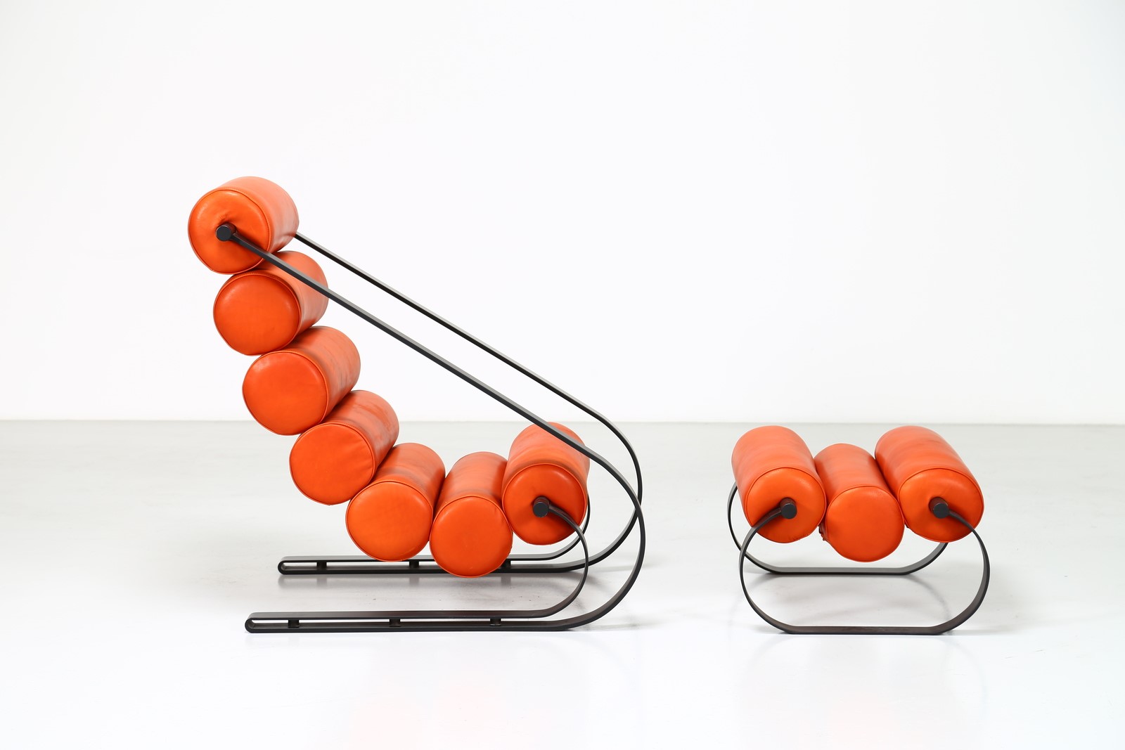 CECCHI MARZIO Poltrona con pouf Balestra. -. Cm 76,00 x 86,00 x 86,00. Metallo laccato e pelle, per Most Firenze. Misura pouf: H 36 L 77 P 53