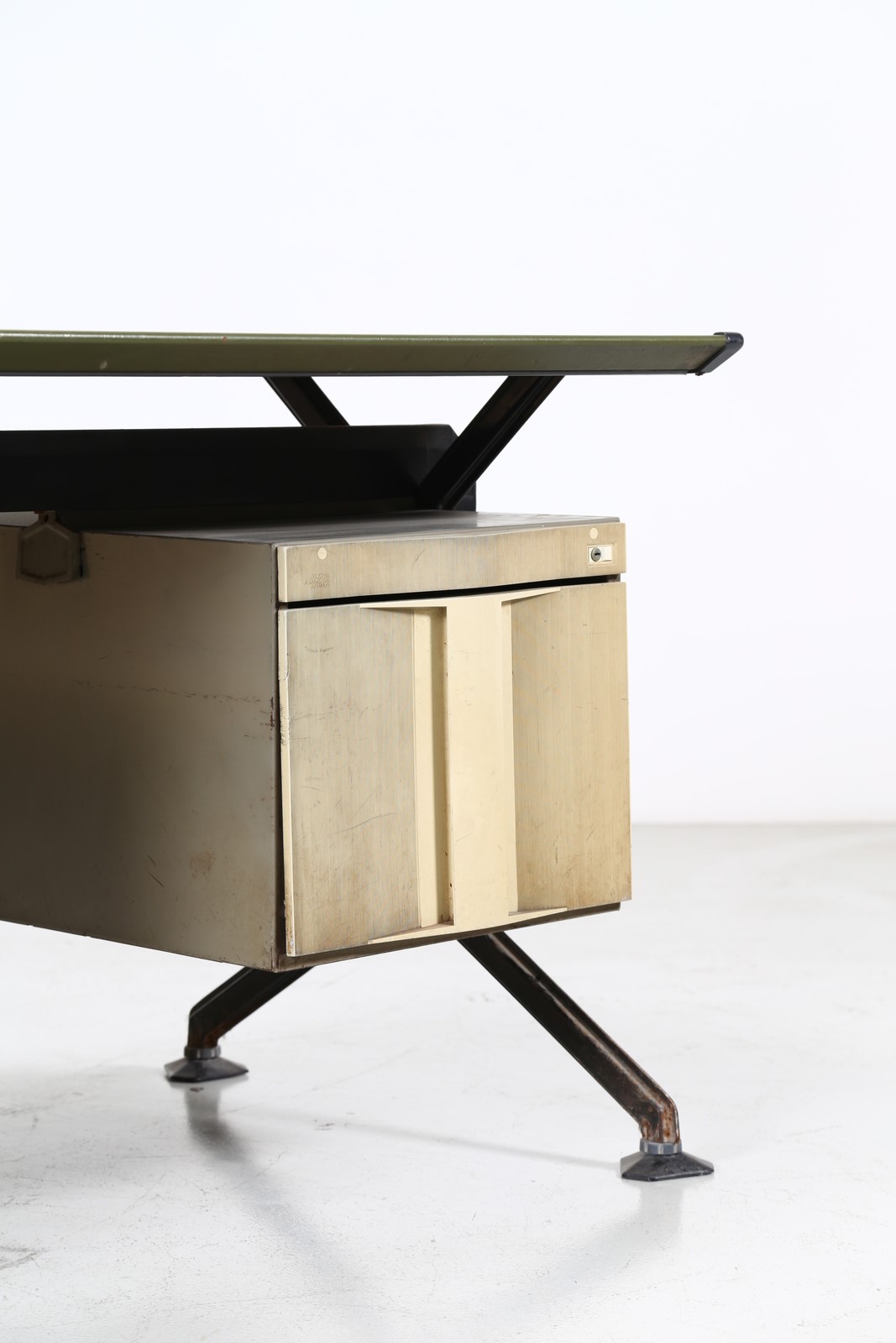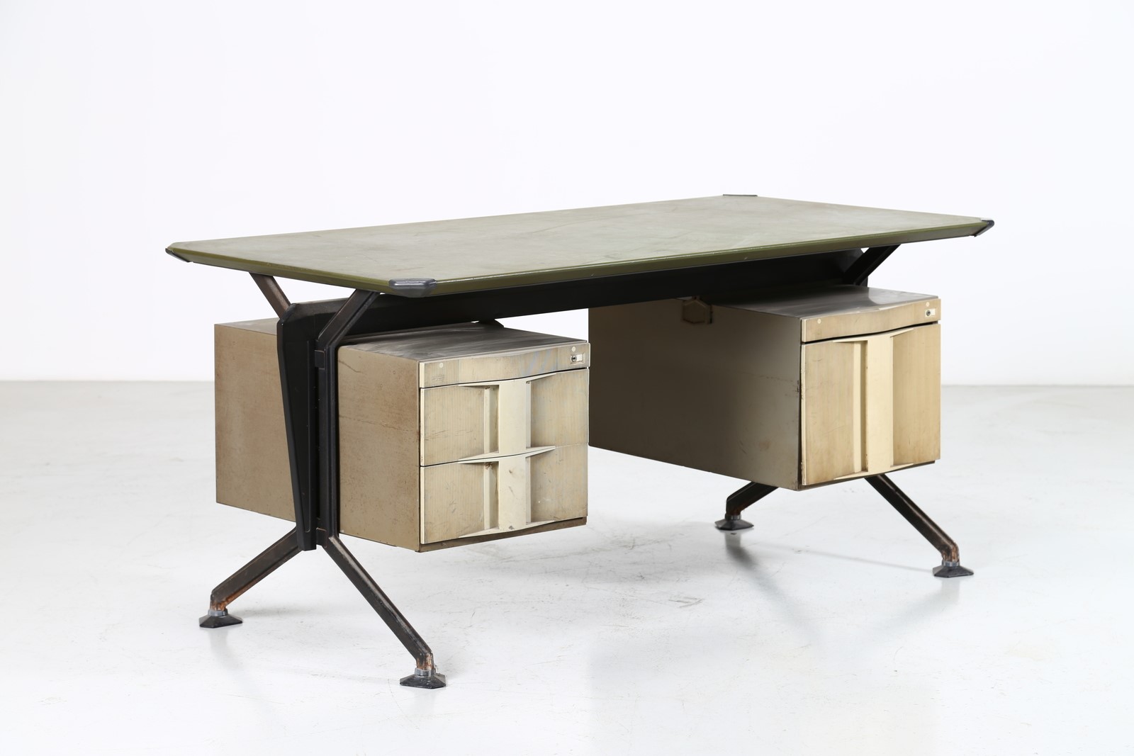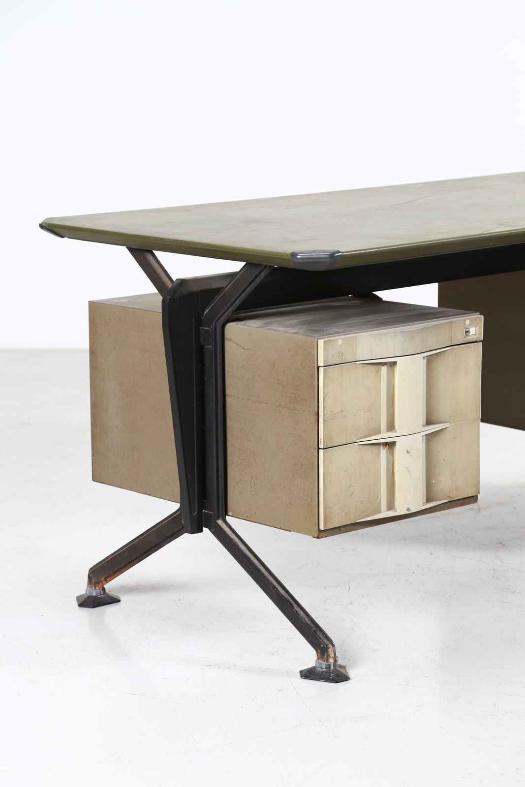 STUDIO BBPR (BANFI, BELGIOIOSO, PERESSUTTI, ROGERS) Scrivania Arco per Olivetti, anni 60. -. Cm 161,00 x 76,00 x 81,00. Metallo, difetti presenti