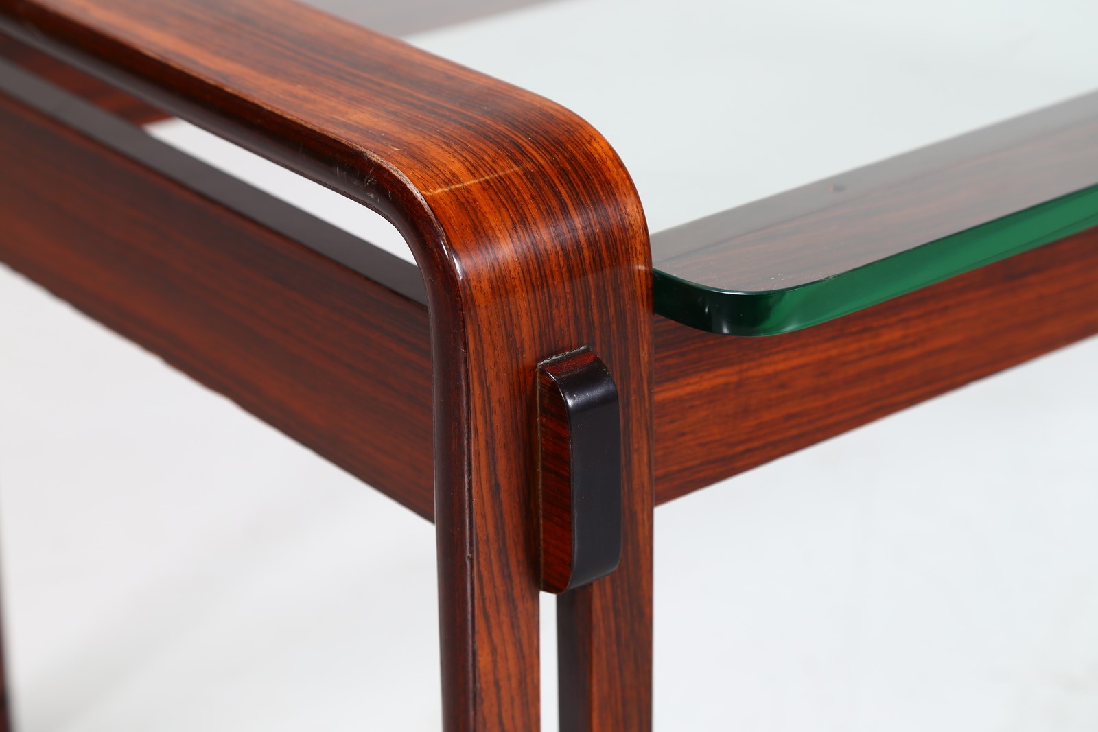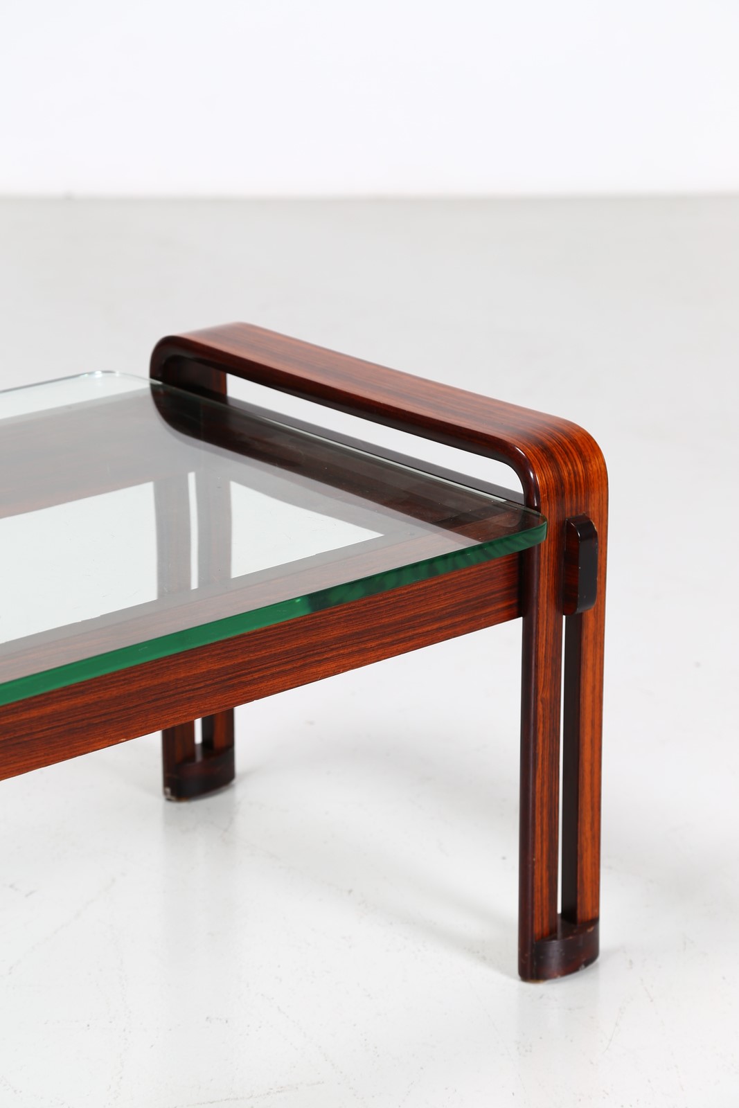 MANIFATTURA ITALIANA Tavolino da salotto. -. Cm 120,00 x 44,50 x 56,00. Legno di palissandro e cristallo