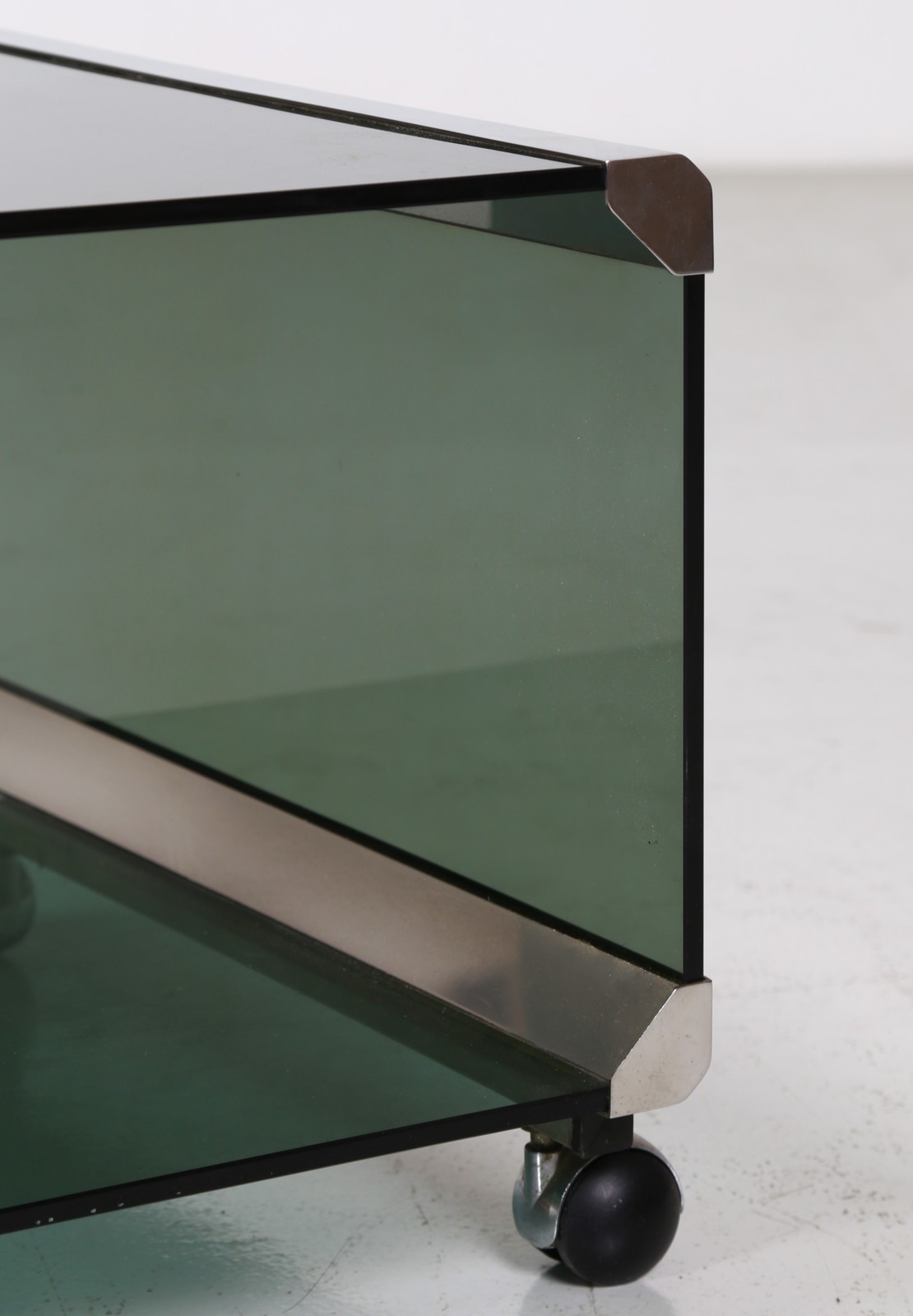 GALLOTTI E RADICE Tavolino da salotto. -. Cm 129,00 x 38,00 x 54,00. Metallo cromato e vetro