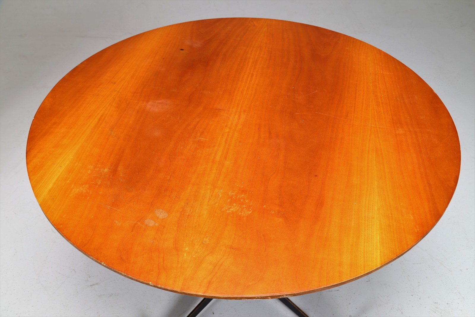MAZZA SERGIO Attrib. Tavolo rotondo anni 50. -. Cm 100,00 x 75,50 x 100,00. Legno di ciliegio, metallo laccato e ottone