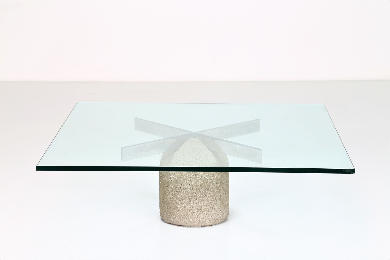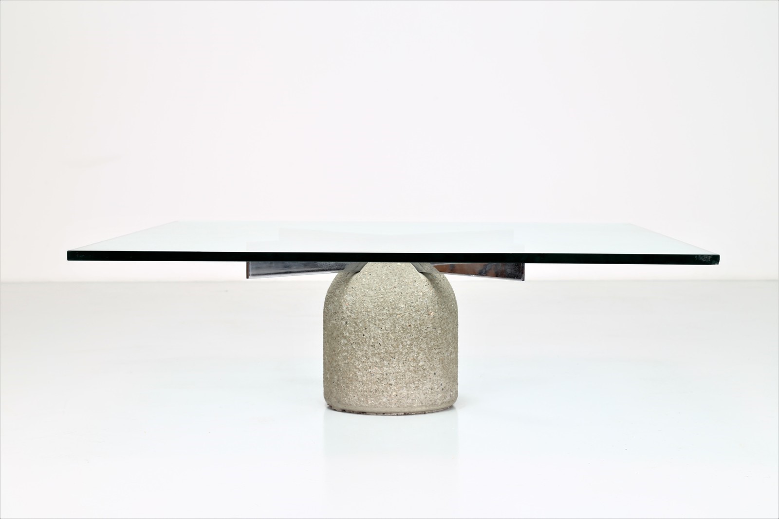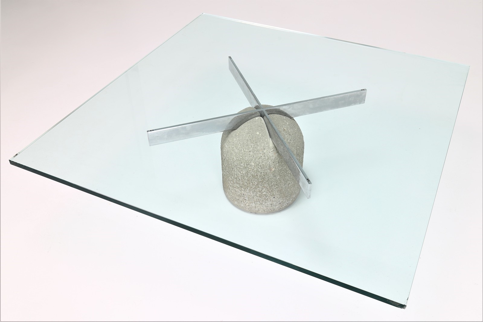 Lotto 411 | OFFREDI GIOVANNI (n. 1927) Tavolino in calcestruzzo, acciaio e vetro, mod....
