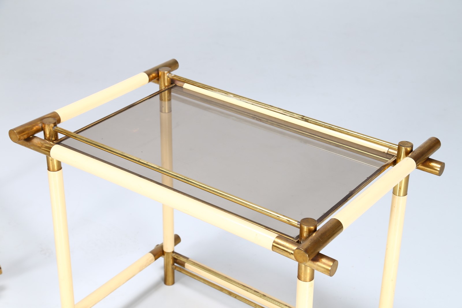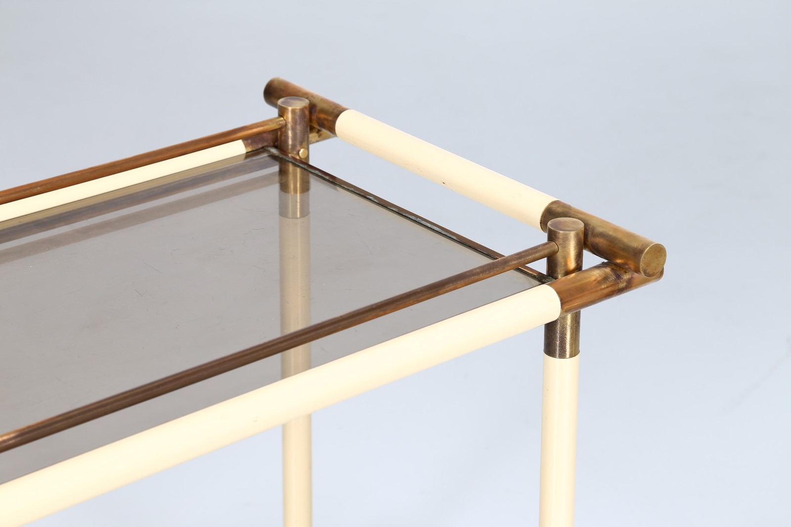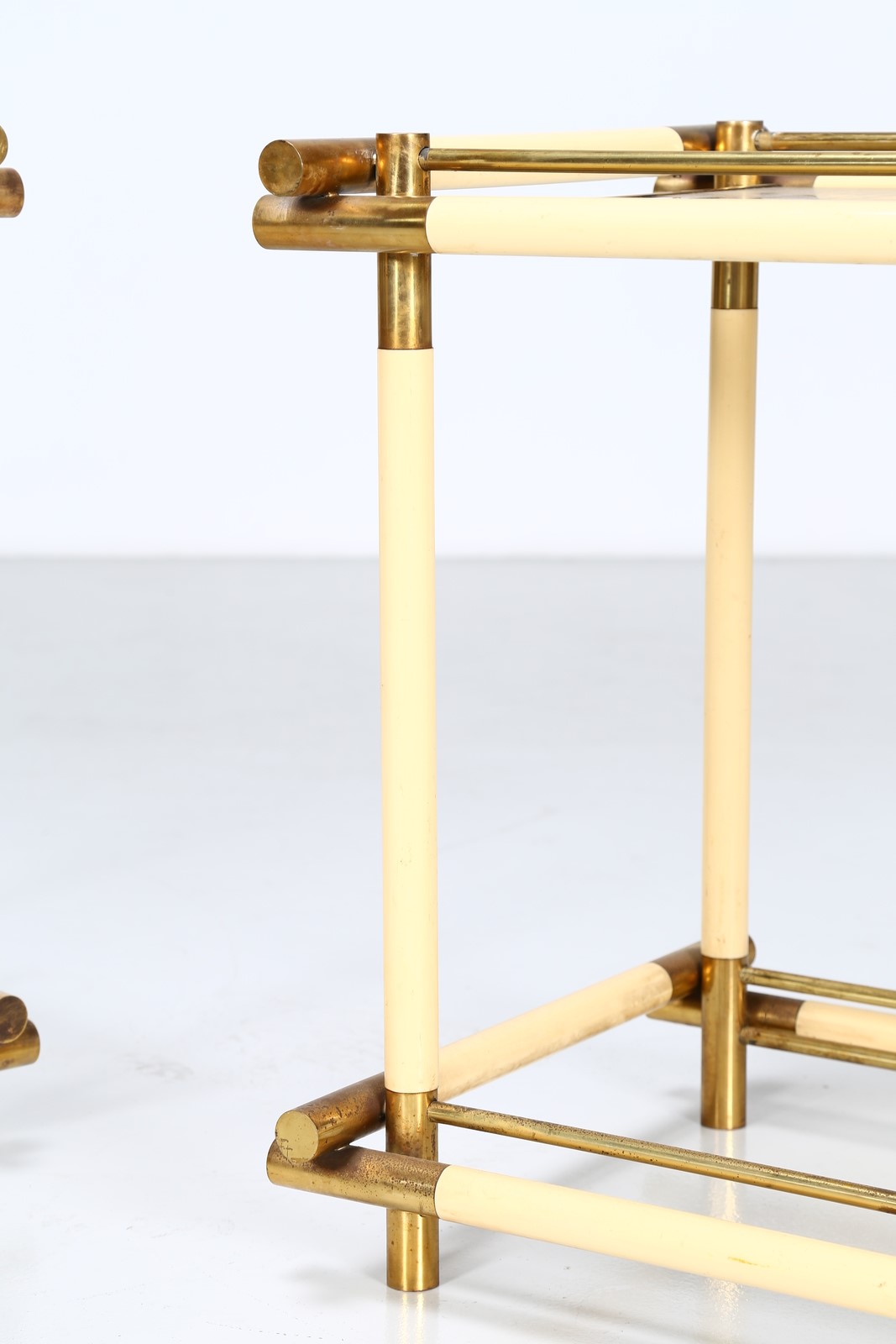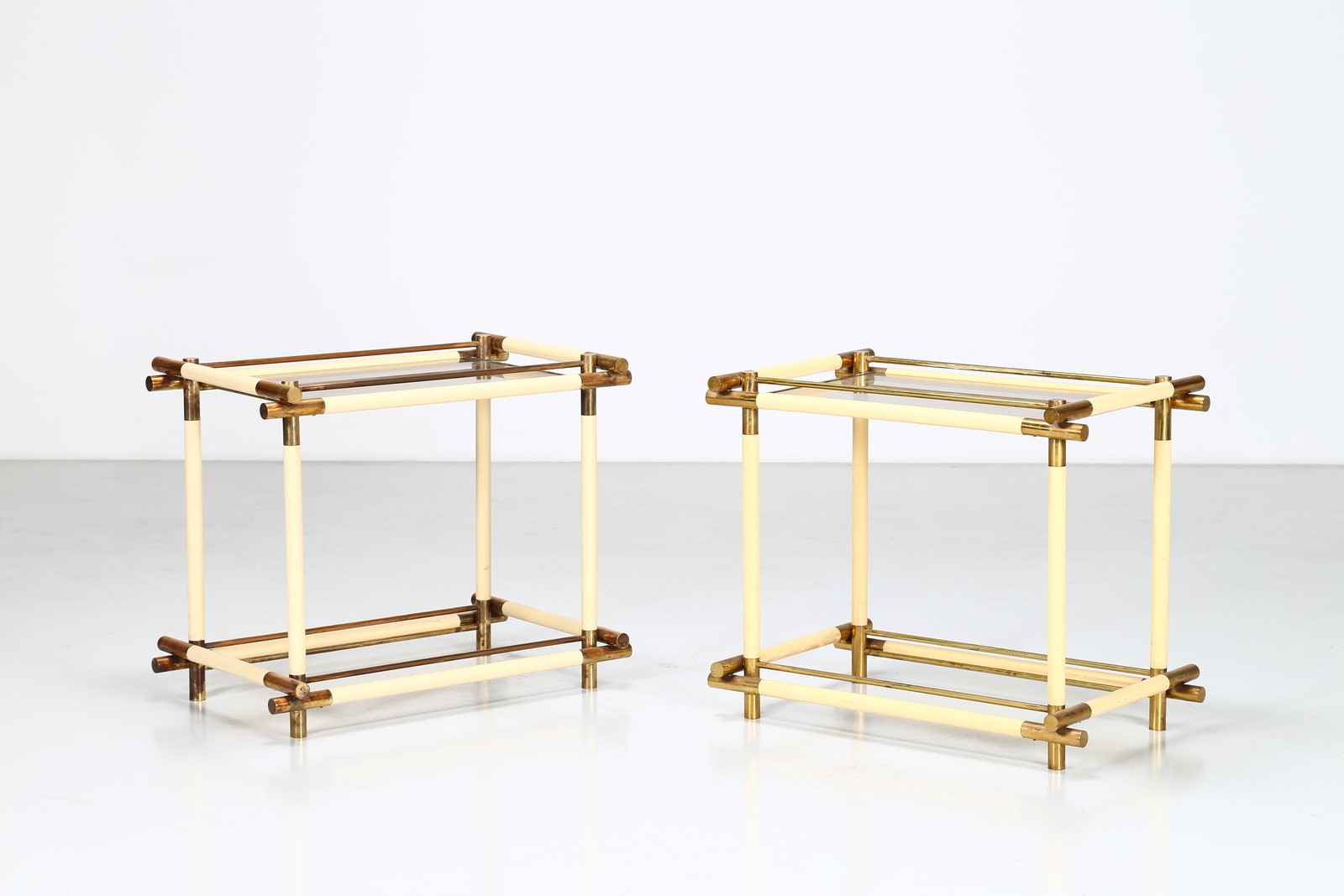 BANCI FIRENZE Coppia di consolle in metallo ottone e vetro, anni 70. -. Cm 79,00 x 66,00 x 52,00.