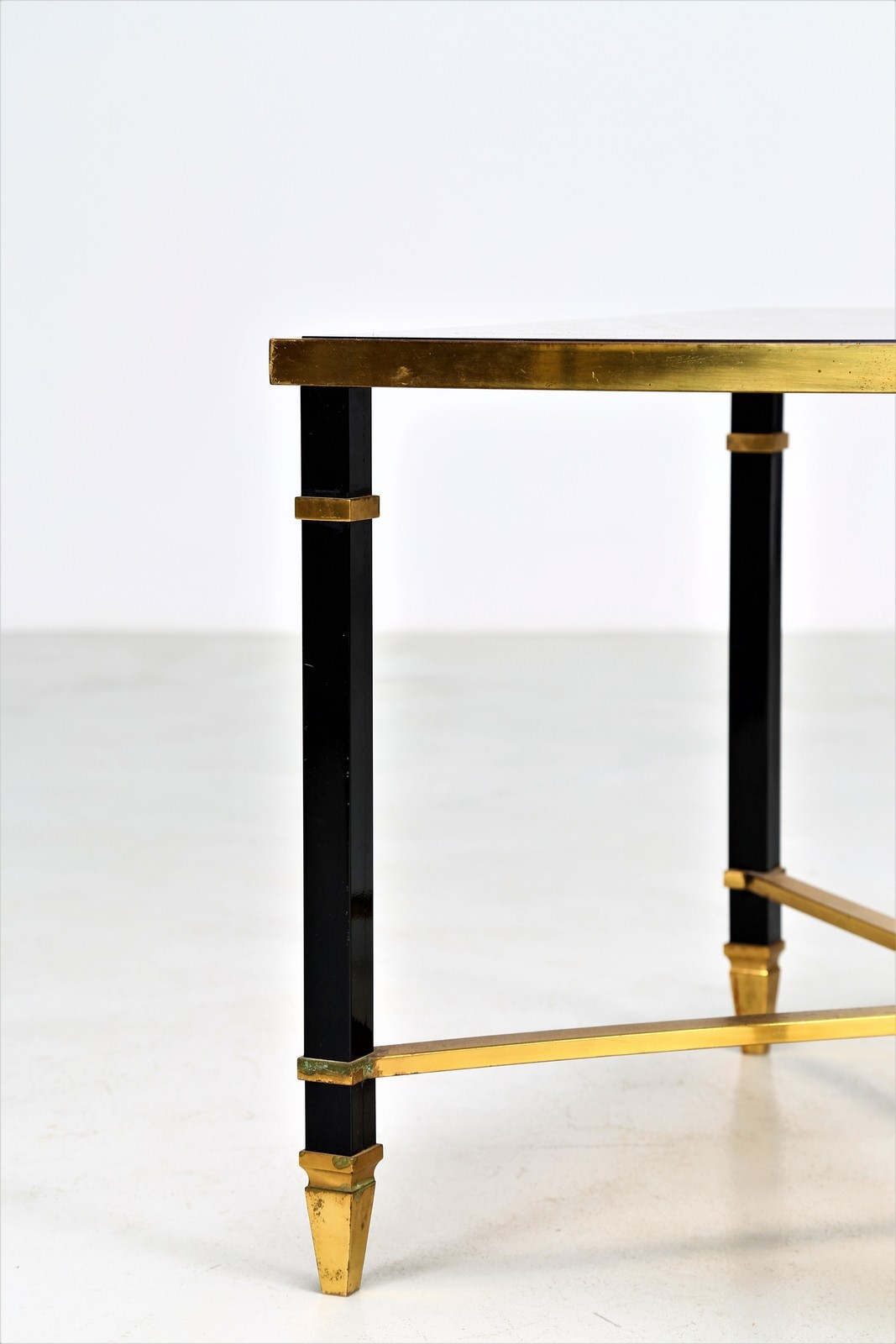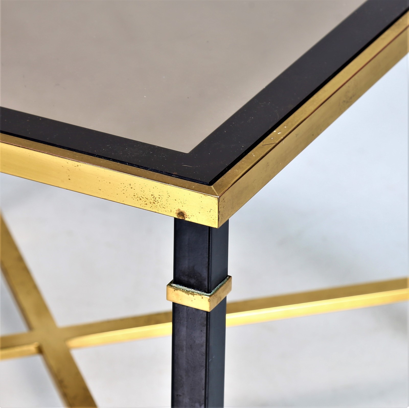 MAISON JANSEN Tavolino in ferro laccato e ottone, piano in cristallo, anni 70...