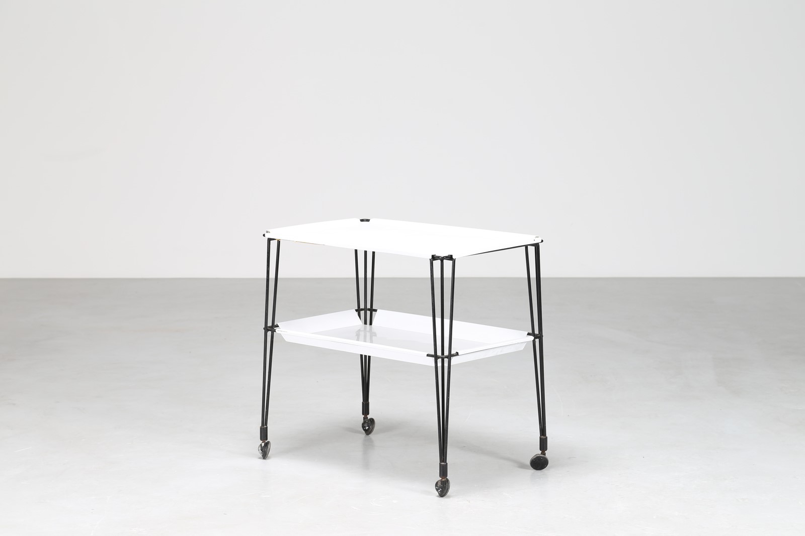 BORSANI OSVALDO (1911 - 1985) Raro carrello portavivande in metallo laccato e plastica, mod. C7, produzione Tecno anni 60. Pubblicazioni; Tecno, L'eleganza discreta della tecnica di Giampiero Bosoni, ed. Skira, pag. 106 . -. Cm 70,50 x 66,00 x 45,50.