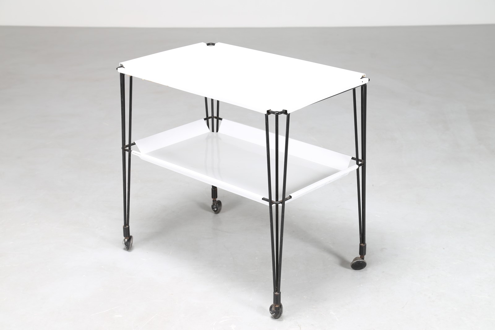 BORSANI OSVALDO (1911 - 1985) Raro carrello portavivande in metallo laccato e...