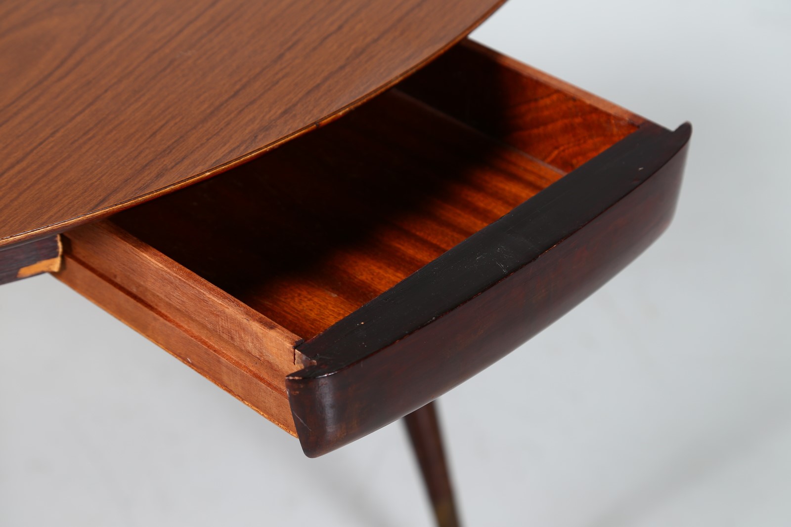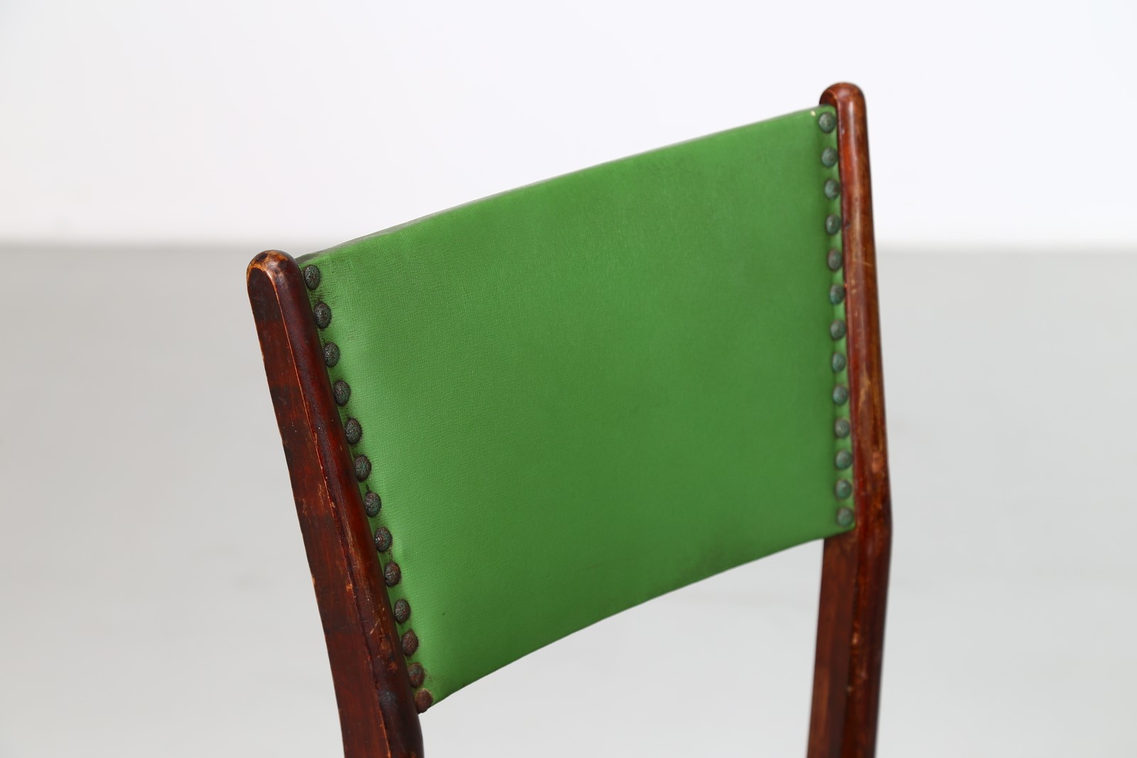MANIFATTURA ITALIANA Tavolo da gioco con quattro sedie in legno, formica, puntali in ottone e rivestimento in sky originale, anni 40. -. . Tavolo, Misura: H 76 L 114,5 P 114,5 Sedie, Misura: H 96 L 46 P 48