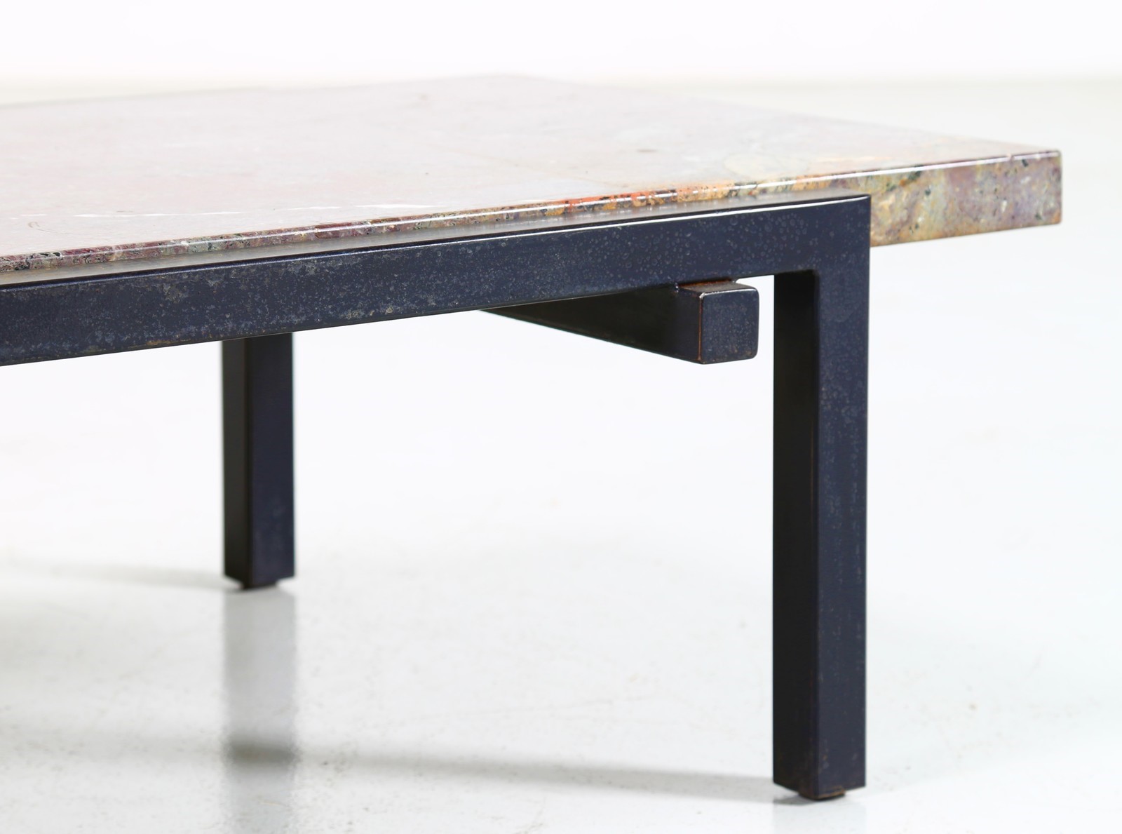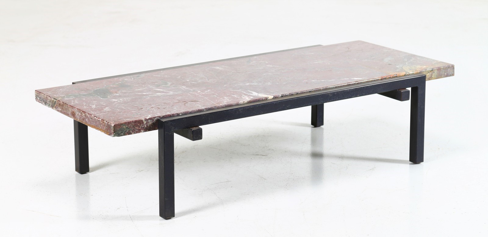 VIGANO' VITTORIANO (1919 - 1996) Attrib. Tavolino da salotto. -. Cm 130,00 x 31,00 x 61,00. Marmo e metallo laccato, Casa Mellini Brescia, anni 70. Pubblicazioni; Vittoriano Viganò, Una ricerca e un segno in Architettura, ed. Electa,