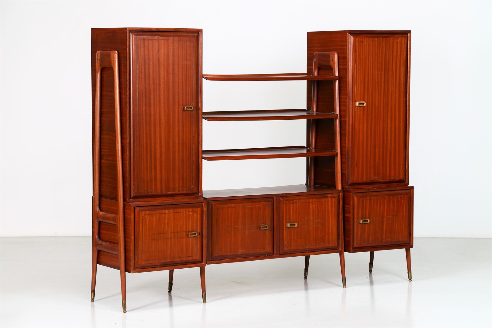 LA PERMANENTE MOBILI CANTÙ Mobile libreria in magano e ottone. -. Cm 205,00 x 163,00 x 53,00.