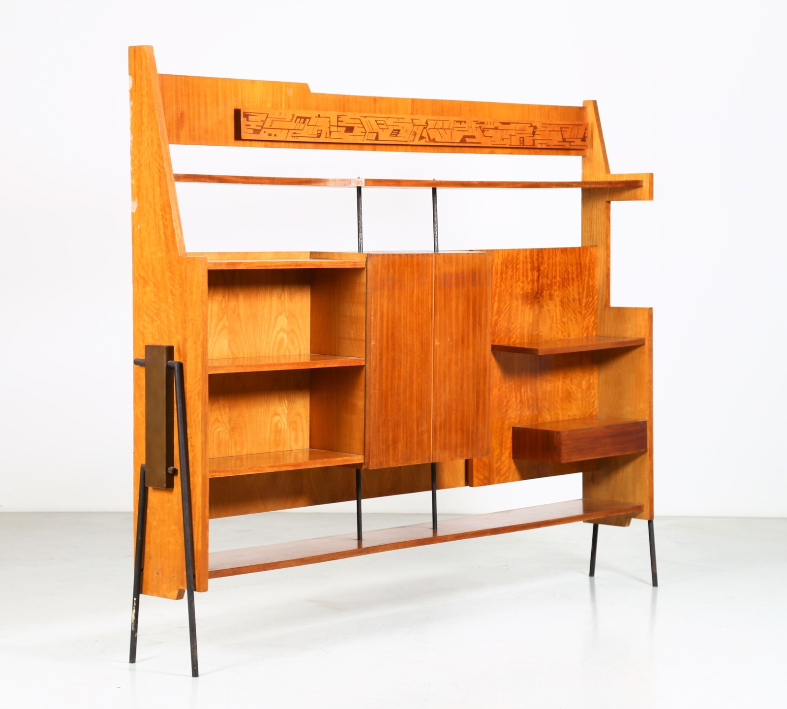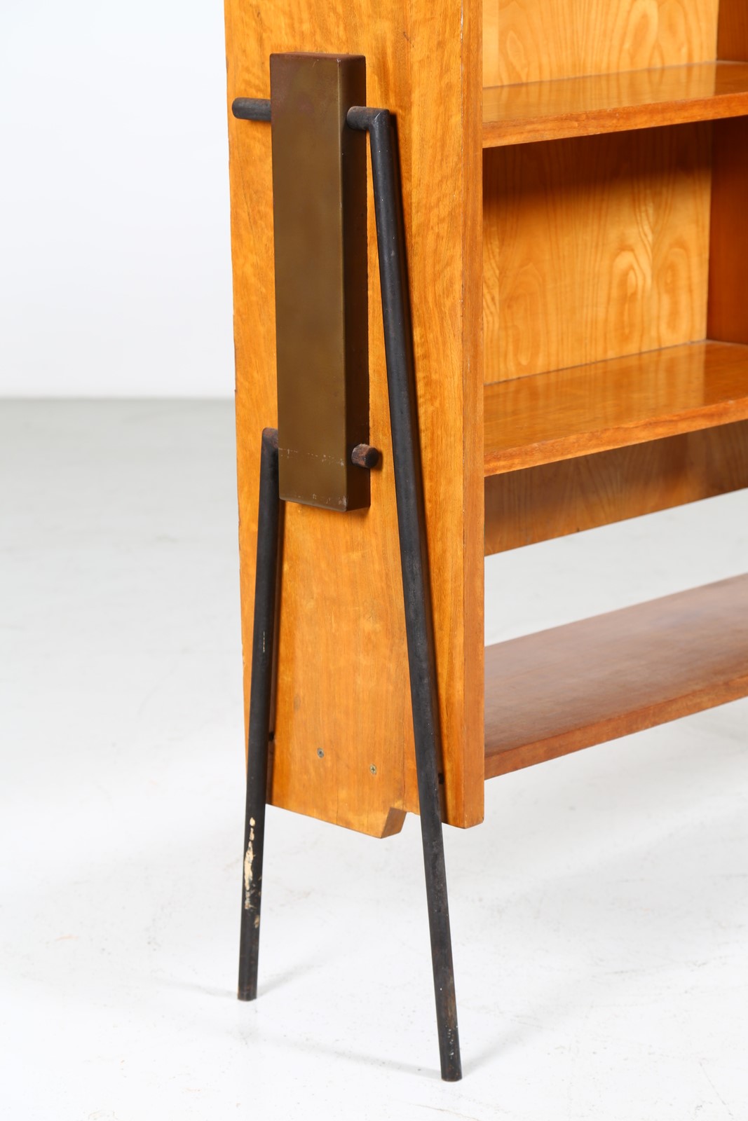 DASSI M.M. Attrib. Libreria a giorno anni 50. -. Cm 228,00 x 192,00 x 32,00. Legno, metallo laccato e ottone,