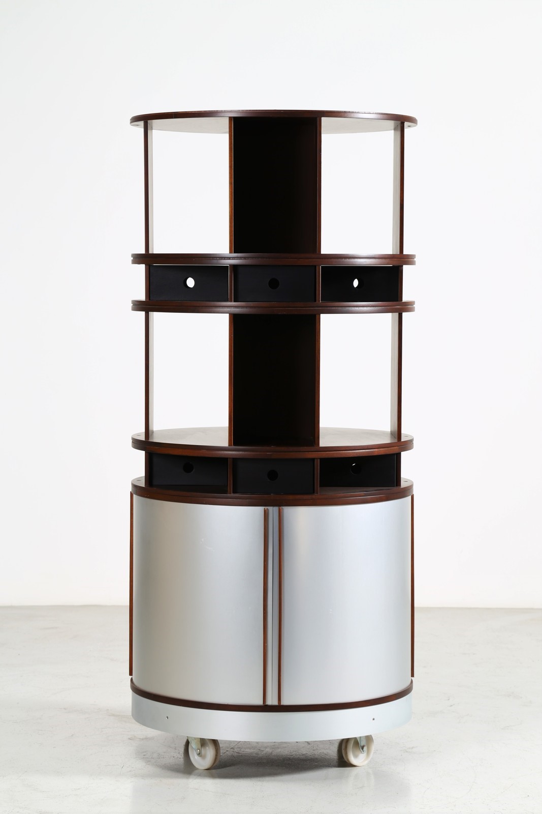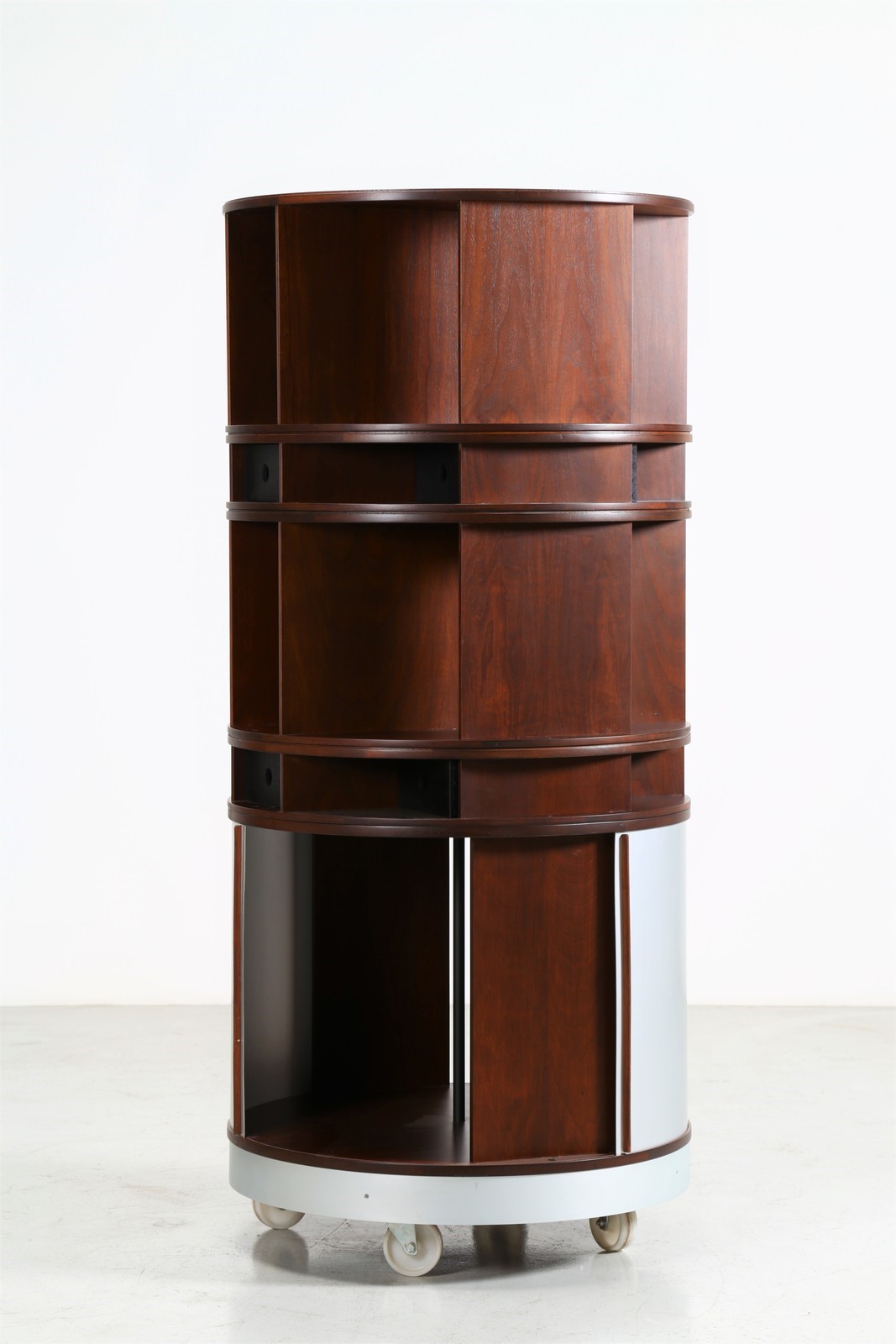 COLOMBO JOE (1930 - 1971) Libreria Torre Comby Center per Bernini anni 60. -. Cm 82,00 x 183,00 x 82,00. Legno di noce e alluminio