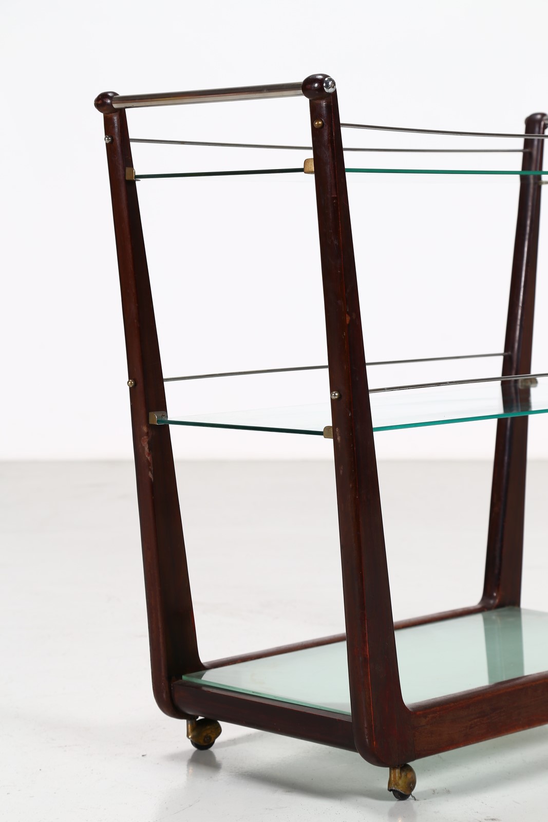 Lotto 477 | MANIFATTURA ITALIANA Carrello in legno, vetro e metallo, anni 50. -. Cm 87,00...