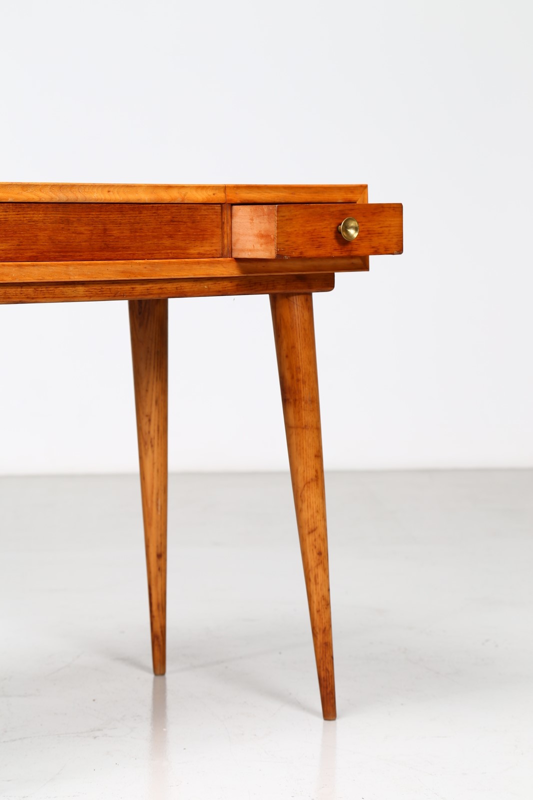 MANIFATTURA ITALIANA Toeletta in olmo, ottone e vetro, anni 40. -. Cm 100,00 x 111,00 x 46,00.