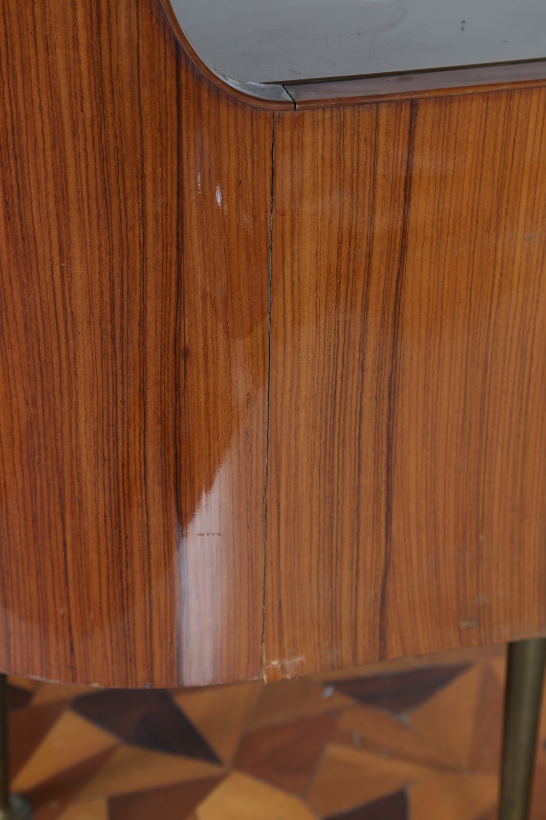 MANIFATTURA ITALIANA Mobile bar in palissandro e ottone, con piani in vetro e...