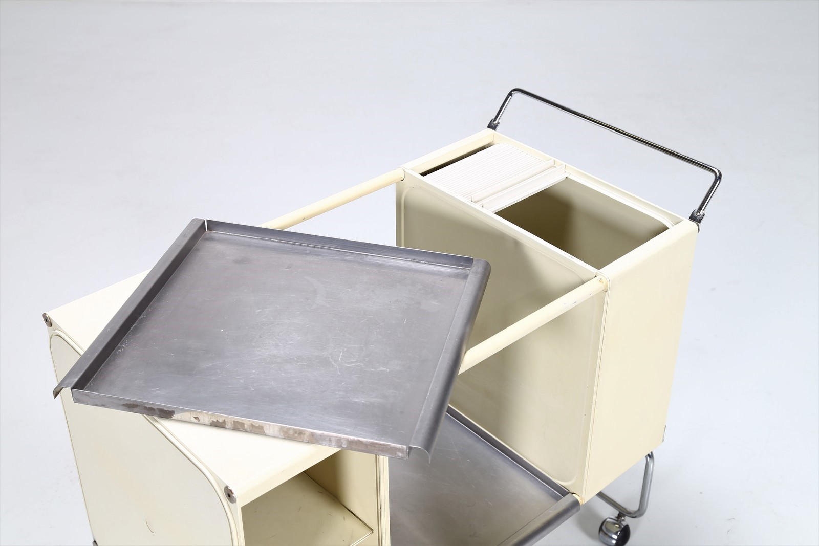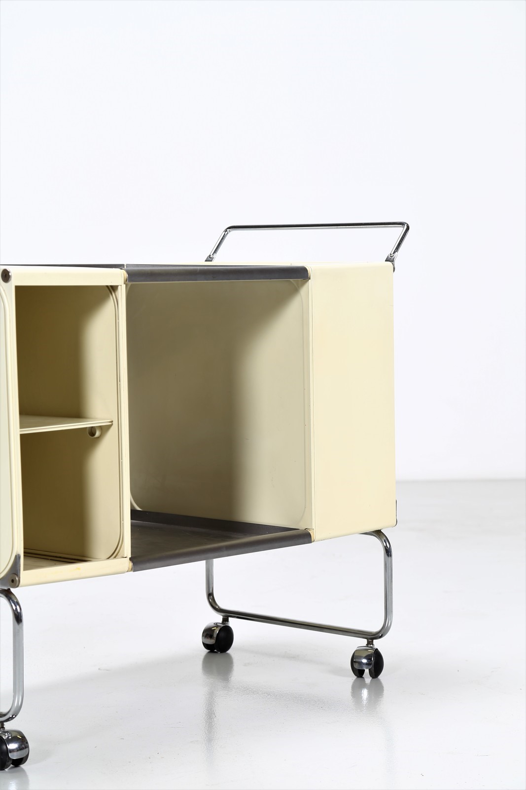 COLOMBO JOE (1930 - 1971) Carrello in plastica e metallo cromato, mod.Square...