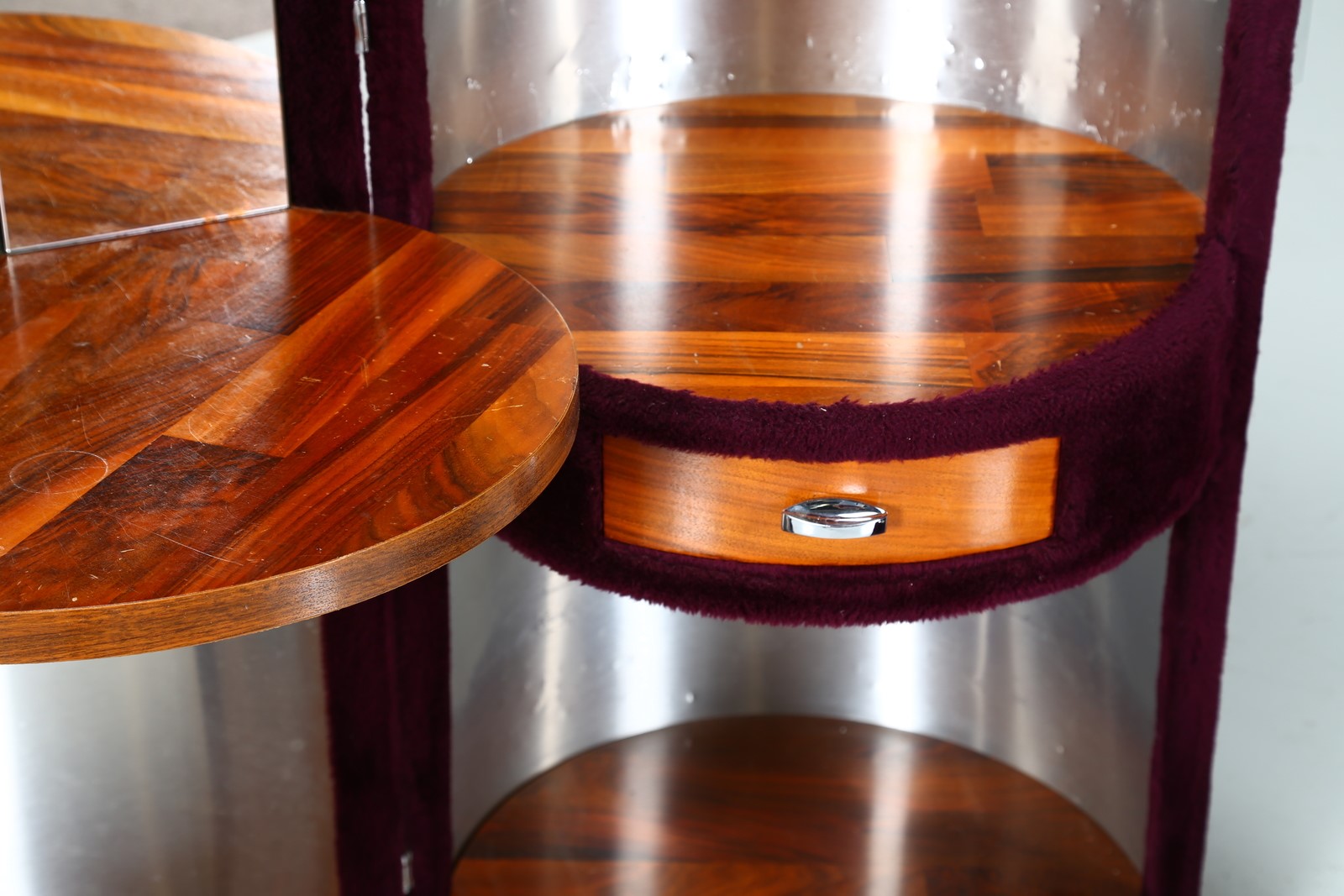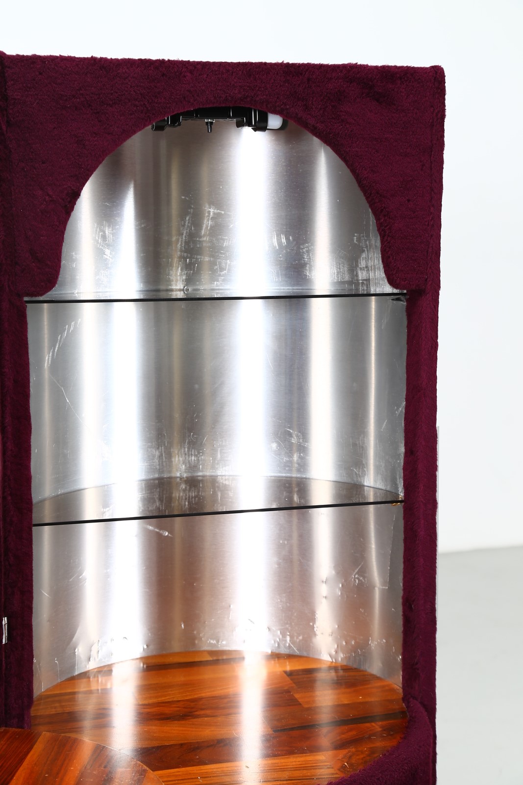 ANONIMO Toilette con illuminazione interna rivestita in pelliccia sintetica, legno alluminio e vetro, anni 70. -. Cm 50,00 x 140,00 x 50,00.