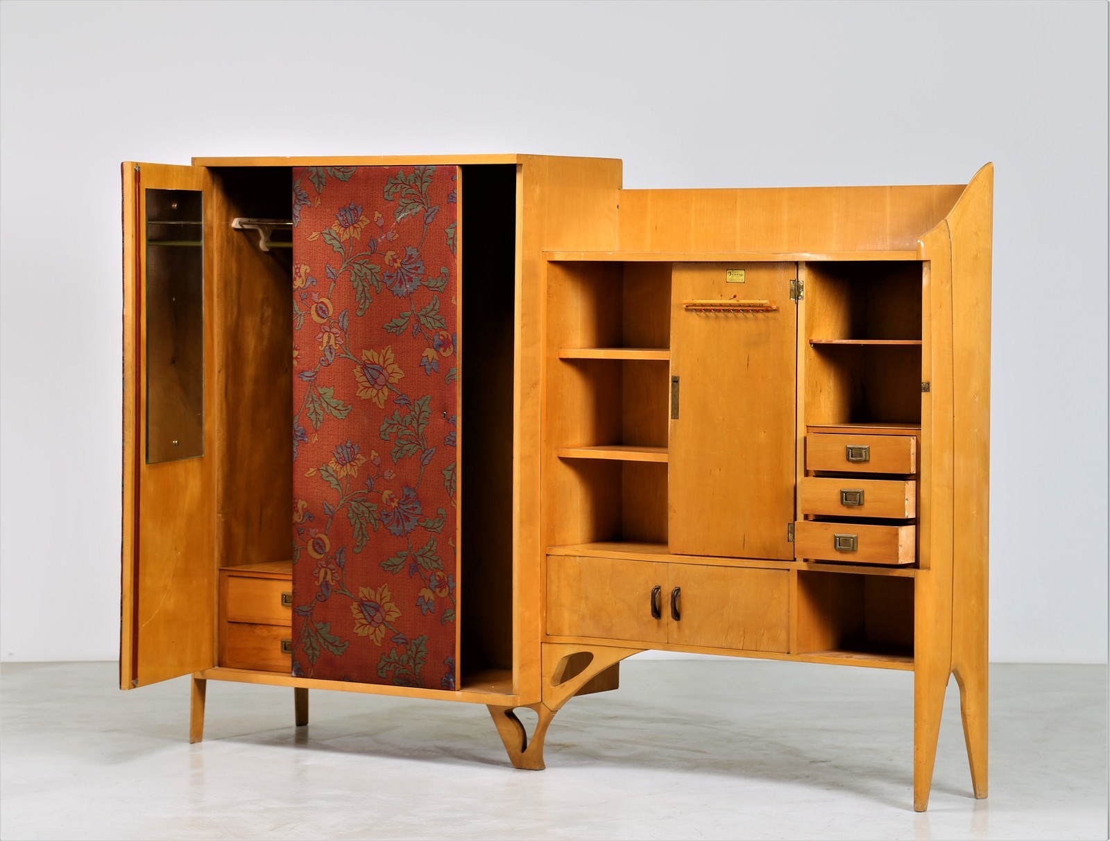 Lotto 496 | MOBILI BARRAJA Mobile da ingresso in legno di acero e tessuto, anni 50....