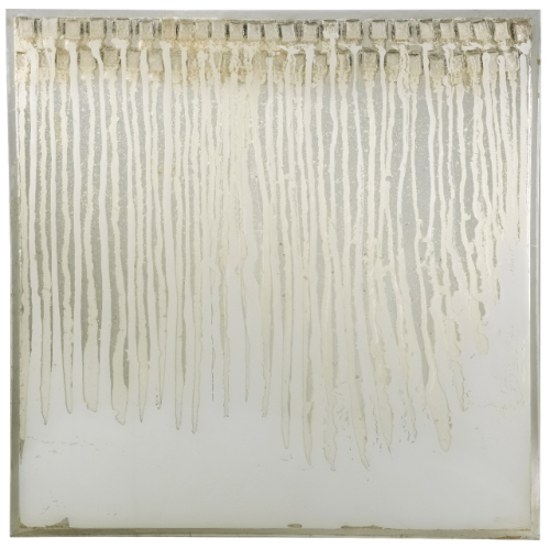 ARMAN 1928 - 2005 BIANCORAGY signed and dated 68, enamel glass vases, resyn and plexiglas. This work is registered in the Arman Studio Archives, New York, under n. APA# 8013.68.110 and is accompained by a photocertificate signed by the artist. firmato e datato 68 accumulazione di vasetti di smalto, resina e plexiglas cm 120x120 Opera registrata preso l'Arman Studio Archives con il numero APA# 8013.68.110 L'opera è accompagnata da certificato su fotografia rilasciato dall'artista PROVENANCE Galleria del Leone, Venezia Ivi acquistato dal precedente proprietario nel 1968
