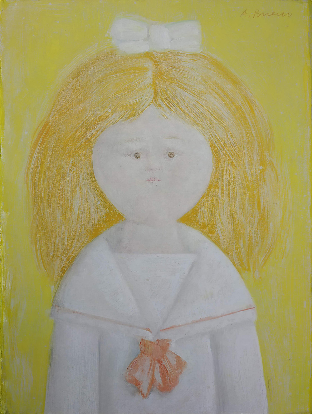 Antonio Bueno, La scolaretta, 1979 Tecnica mista su carta riportata su tavola, 40x30 cm Firma in alto a destra Certificato d'autenticità su foto a firma dell'artista