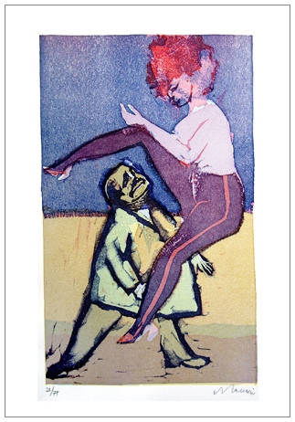 MINO MACCARI Siena 1898 – Roma 1989 Senza titolo Xilografia e acquatinta a colori es.22/75. Firma in b. a d. (35 x 50 foglio – 37,2 x 22,5 inc.) Opera facente parte della cartella “3 incisioni di Mino Maccari” eseguite dall’artista in esclusiva per la galleria d’arte Ferretti, Viareggio, in occasione dell’Arte Fiera di Bologna, maggio-giugno 1975. Tiratura: 75 es. num. arabi su carta Magnani, Pescia. Stampatore: Nemo Galleni, Forte dei Marmi. Legni biffati. Editore: Galleria Ferretti, Viareggio. Pubbl.: “Mino Maccari Catalogo ragionato delle incisioni” volume primo, a cura di Francesco Meloni, Electa Editrice, Milano, 1979, p.200, n. 832, 833, 834. base: 60 Se pervenissero richieste per l’insieme, tre le xilografie – acquetinte (lotti 7 – 8 – 9) + cartella, la base sarà di 150,00 euro e avranno precedenza sulle offerte singole.