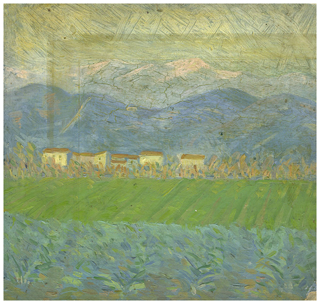ALESSANDRO VOLPI Pisa1909 – Pisa 1978 Senza titolo Olio su cartone 20 x 21,5. Firma e dedica all’artista Santi Macchia sul verso. base: 50