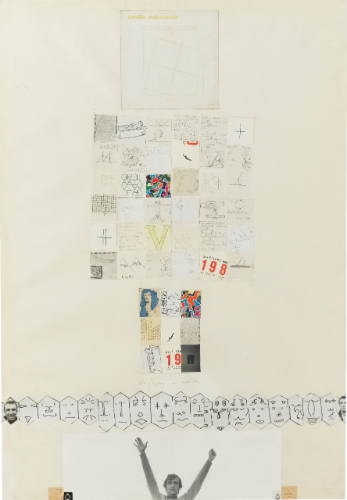 ALIGHIERO BOETTI 1940 - 1994 SENZA TITOLO signed, collage, photographic print and mixed technique on paper. Executed in 1980 firmato collage, stampa fotografica e tecnica mista su carta cm 99x69 Eseguito nel 1980 Opera registrata presso l'Archivio Alighiero Boetti, Roma, con il n. 605 L'opera è accompagnata da certificato su fotografia rilasciato dall'Archivio Alighiero Boetti