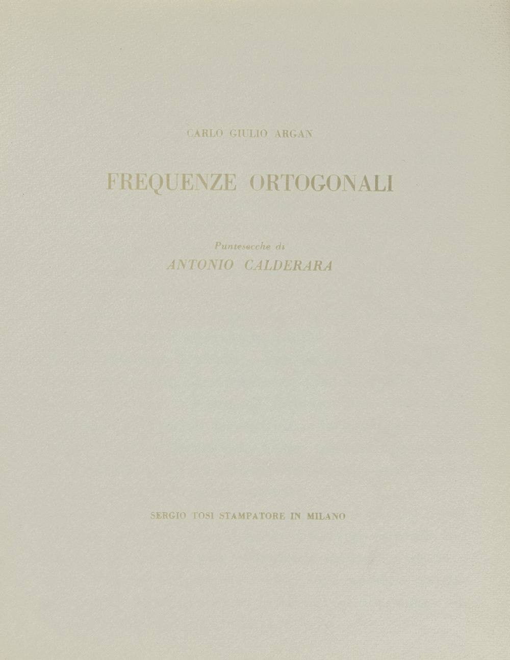 Antonio Calderara 1903 - 1978 Frequenze ortogonali tecnica Cartella di 6 puntesecche Dimensioni cm. 29,5 x 22,5 cad. Firma Firmato Note a cura di Carlo Giulio Argan Stampatore Sergio Tosi, Milano Tiratura 50 esemplari numeri arabi Opera n. 38/50 Provenienza Collezione Privata
