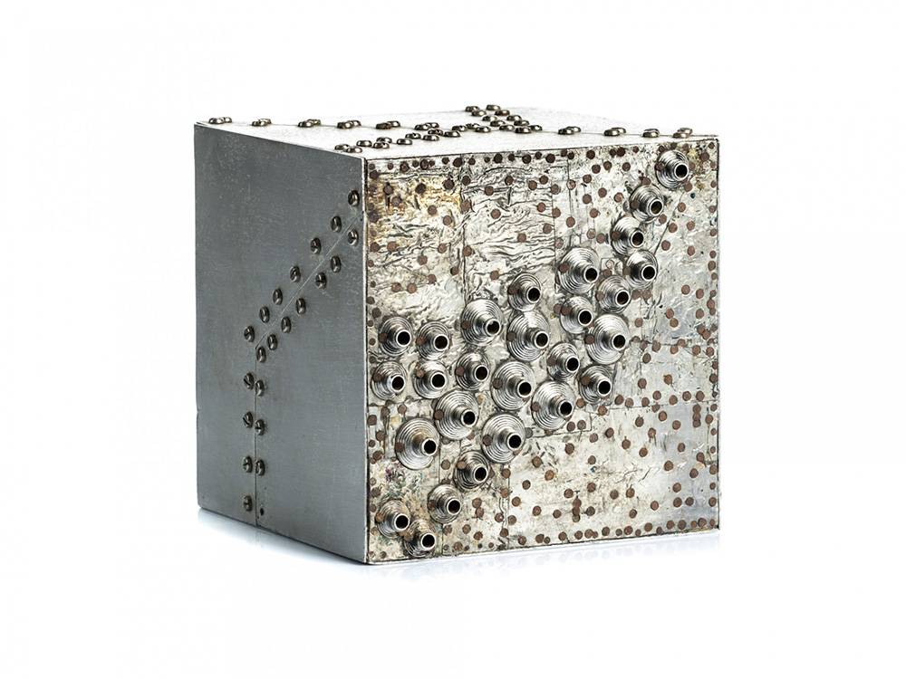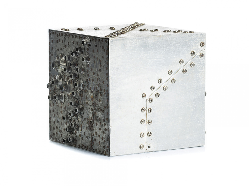 Remo Remotti 1924 - 2015 Cubo - 1965 tecnica Scultura in metallo Dimensioni cm. 20 x 20 x 22 Firma Firmato alla base Note Esemplare unico Provenienza Collezione Privata Pubblicazioni “Il futuro delle mani. Artieri domani. Album rosso”, catalogo mostra ex OGR, Torino (17 marzo - 20 novembre 2011), Comitato Italia 150, Torino, 2011, p. 67