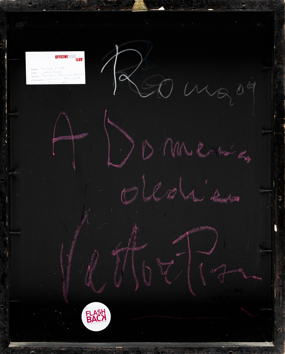 Vettor Pisani 1934 - 2011 Senza titolo - 2009 tecnica Assemblaggio, tecnica mista su tavola Dimensioni cm. 53,5 x 43,5 x 14 Firma Firmato e datato sul retro Note Dedica dell’artista sul retro Etichetta Officine delle Arti sul retro Provenienza Collezione Privata