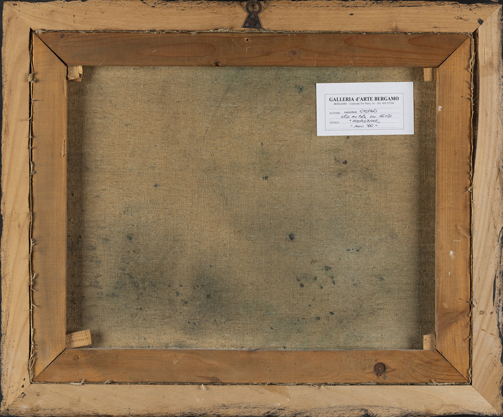 Luciano Gaspari 1913 - 2007 Composizione - anni ’60 tecnica Olio su tela Dimensioni cm. 40 x 50 Firma Firmato in basso a destra Note Etichetta Galleria d’Arte Bergamo, sul retro Provenienza Collezione Privata
