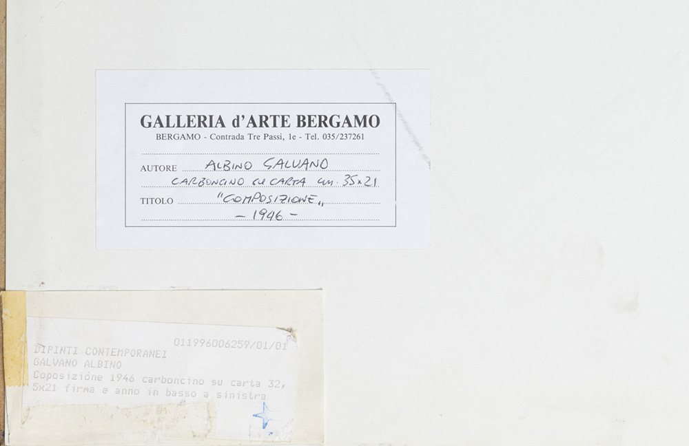 Albino Galvano 1907 - 1991 Senza titolo - 1948 tecnica Carboncino su carta Dimensioni cm. 32,3 x 21,5 Firma Firmato in basso a sinistra Provenienza Collezione Privata
