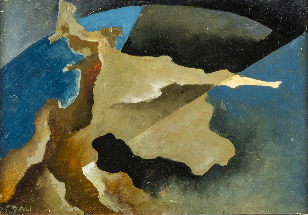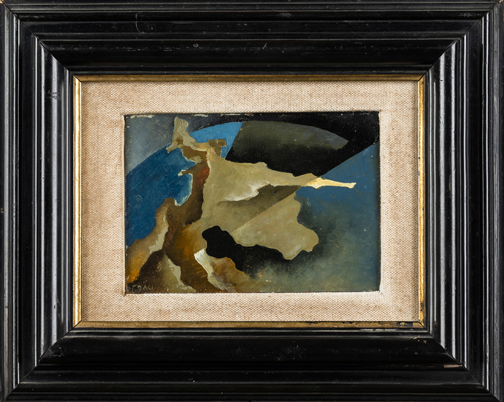 Tullio Crali 1910 - 2000 Composizione - anni ’30 tecnica Olio su tavola Dimensioni cm. 11 x 16 Firma Firmato in basso a sinistra Note Etichetta Galleria d’Arte Bergamo, sul retro Provenienza Collezione Privata Esposizioni “Futurismo & Futuristi”, Bergamo, Galleria d’Arte Bergamo, ottobre - novembre 1996