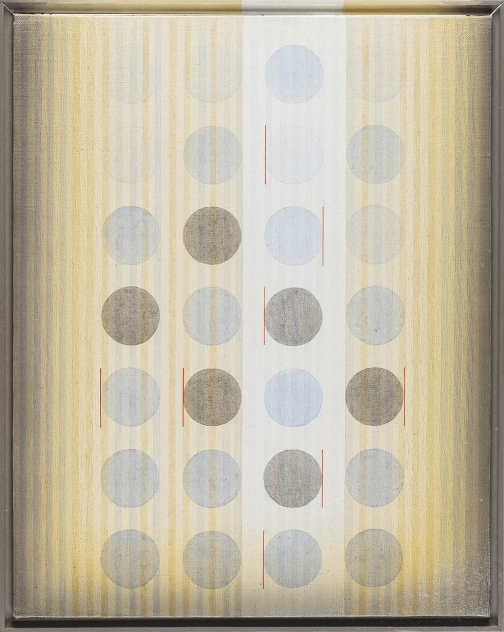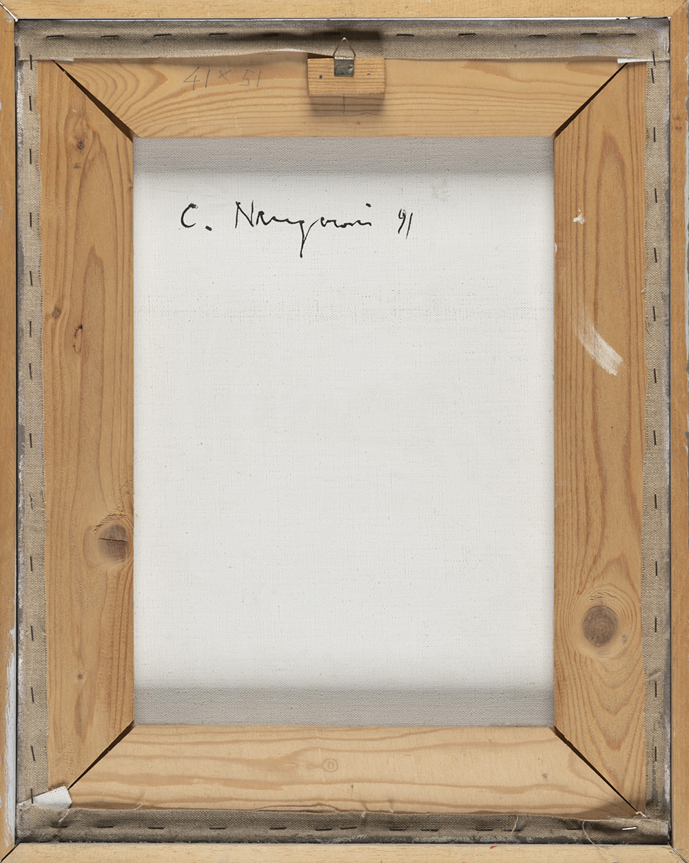 Carlo Nangeroni 1922 - 2018 Senza titolo - 1991 tecnica Acrilico su tela con cornice invasa Dimensioni cm. 54,5 x 43 (interno cm. 51,5 x 40,5) Firma Firmato e datato sul retro Provenienza Collezione Privata