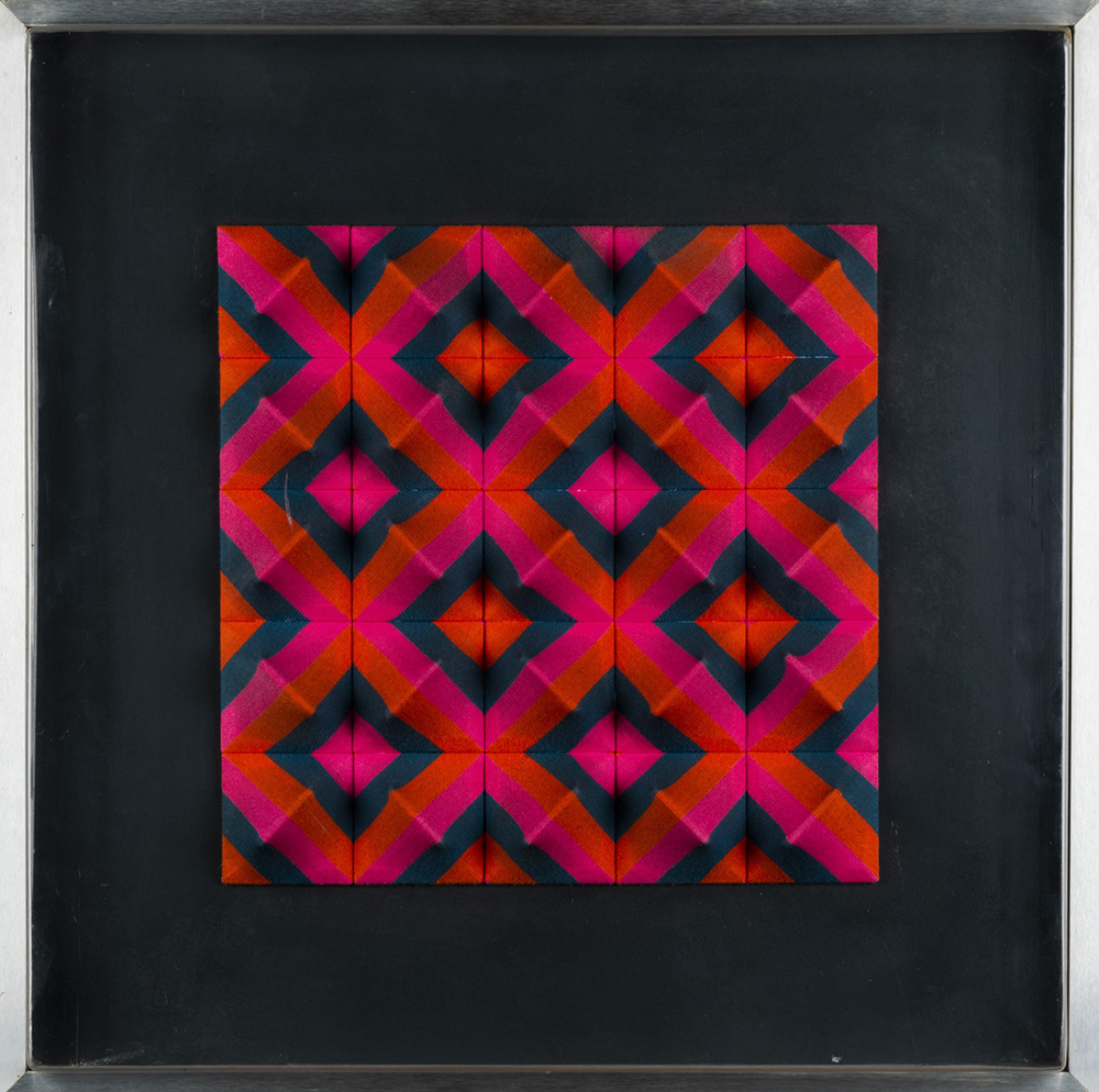 Giorgio Villa 1933 Senza titolo - 1975 tecnica Estroflessioni su tessuto applicate su tavola Dimensioni cm.64 x 64 (interno cm. 40 x 40) Firma Firmato e datato in basso a sinistra Provenienza Collezione Privata