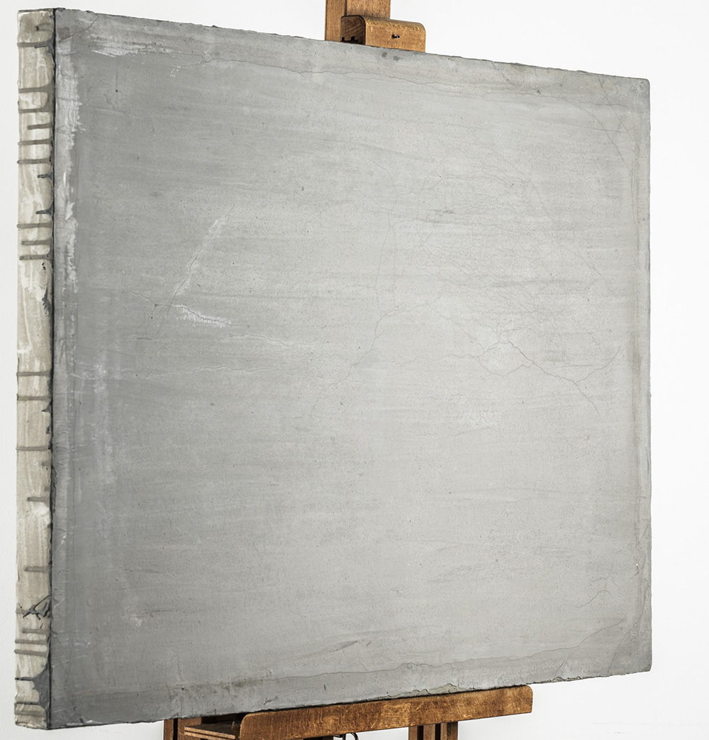 Enzo Cacciola 1945 4 - 4 - 1975 - 1975 tecnica Cemento su tela Dimensioni cm. 70 x 100 Firma Firmato e datato sul retro Documenti Autentica dell'artista su fotografia Note Timbro dell'artista sul retro Provenienza Collezione Privata