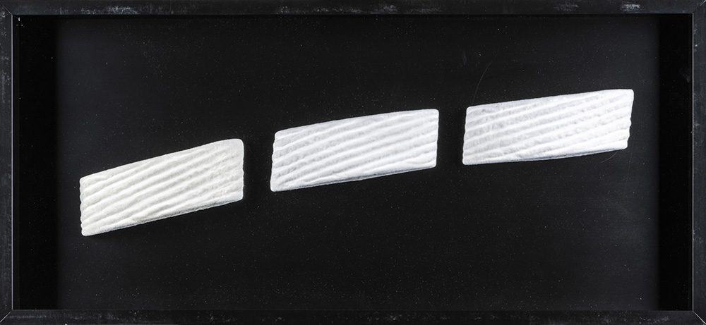 Pino Pinelli 1938 Pittura B - 2010 tecnica Pittura su tre elementi Dimensioni cm. 8 x 24 cad. Firma Firmato e datato sul retro Documenti Autentica su fotografia a cura dell’Archivio Pino Pinelli, Milano Provenienza Collezione Privata