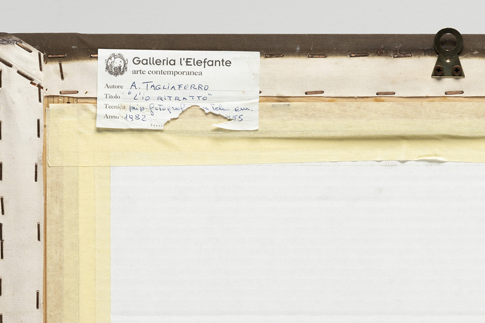 Aldo Tagliaferro 1936 - 2009 L’Io ritratto, particolare n. 25 - 1982 tecnica Riporto fotografico su tela emulsionata Dimensioni cm. 83 x 55 Firma Firmato e datato sul retro Note Etichetta Galleria l’Elefante, Treviso sul retro Provenienza Collezione Privata