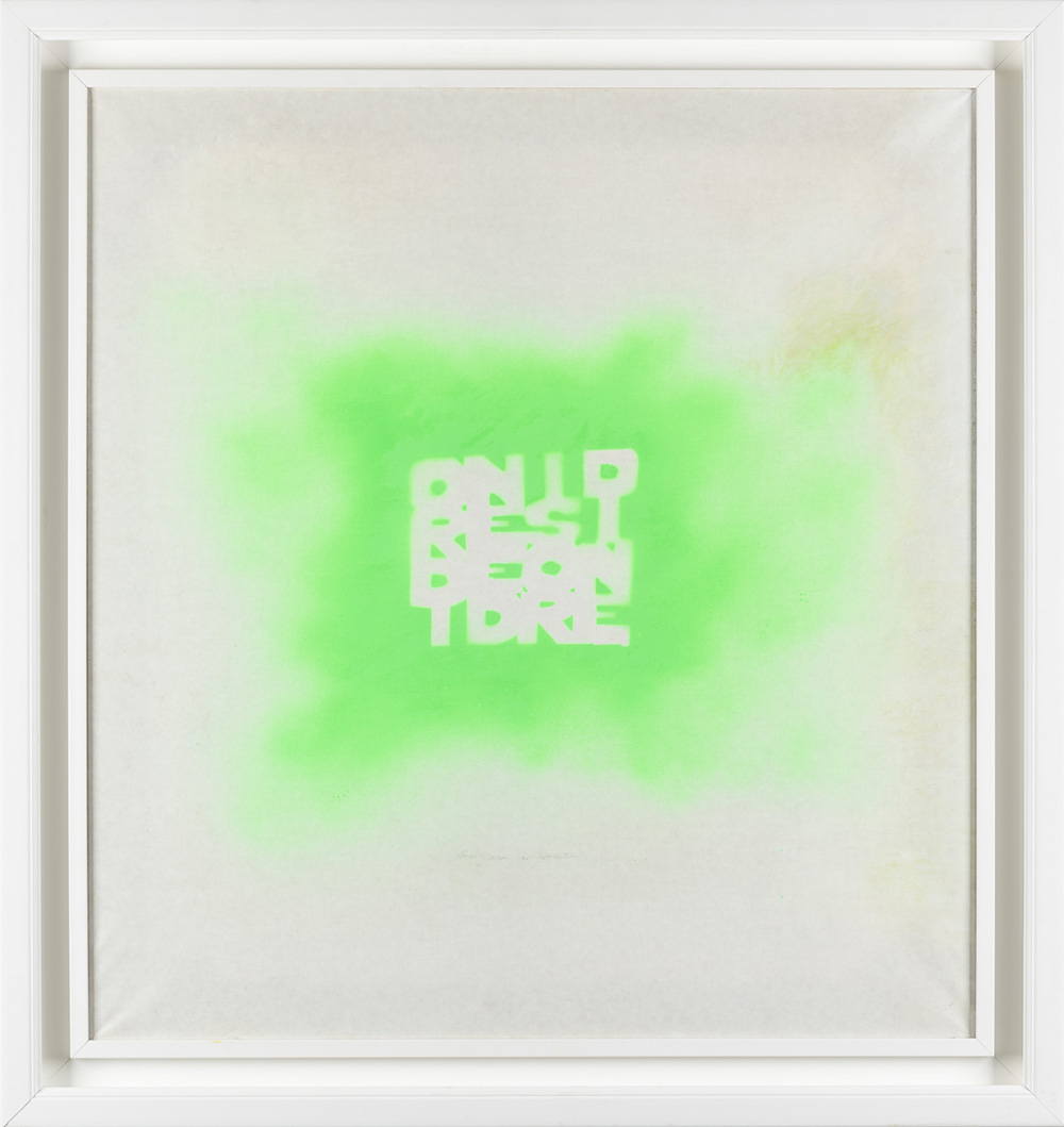 Alighiero Boetti 1940 - 1994 Ordine e disordine - 1981 ca. tecnica Pochoir su carta Dimensioni cm. 76 x 70 Firma Firmato in basso al centro Documenti Autentica su fotografia a cura dell’Archivio Alighiero Boetti, Roma Note Dedica dell’artista sul retro Provenienza Collezione Privata