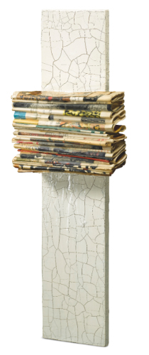 GIANFRANCO BARUCHELLO N. 1924 MICRO SALON DOLORICIDA signed, titled and dated 1962 on the reverse firmato, intitolato e datato 1962 collage, vinavil e smalto su tavola cm 92x30x12 EXHIBITED Roma, Archivio della Scuola Romana, Per Il Clima felice degli Anni Sessanta, 1998, pag. 41, illustrato Roma, Galleria Il Segno, La Tartaruga. Privato, 2006, pag. 16, illustrato LETTERATURA Opera acquisita direttamente dall'artista