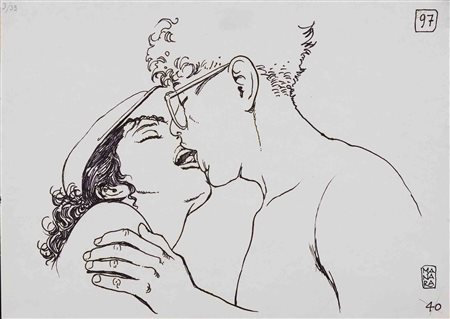 MILO MANARA (1945) Kamasutra Matita e china su carta 21 x 29,5 cm Firmato in...