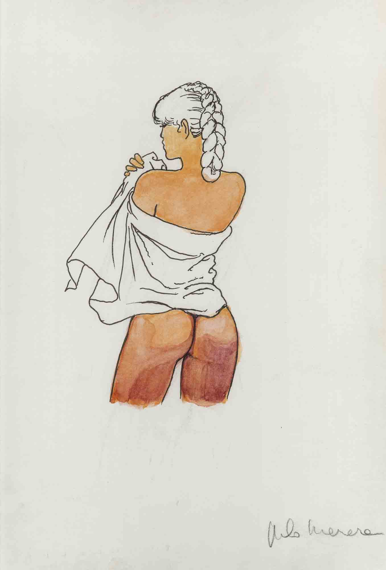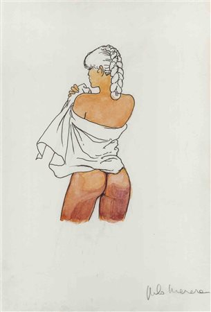 MILO MANARA (1945) Donna di schiena Tencnica mista su carta 30 x 20 cm...