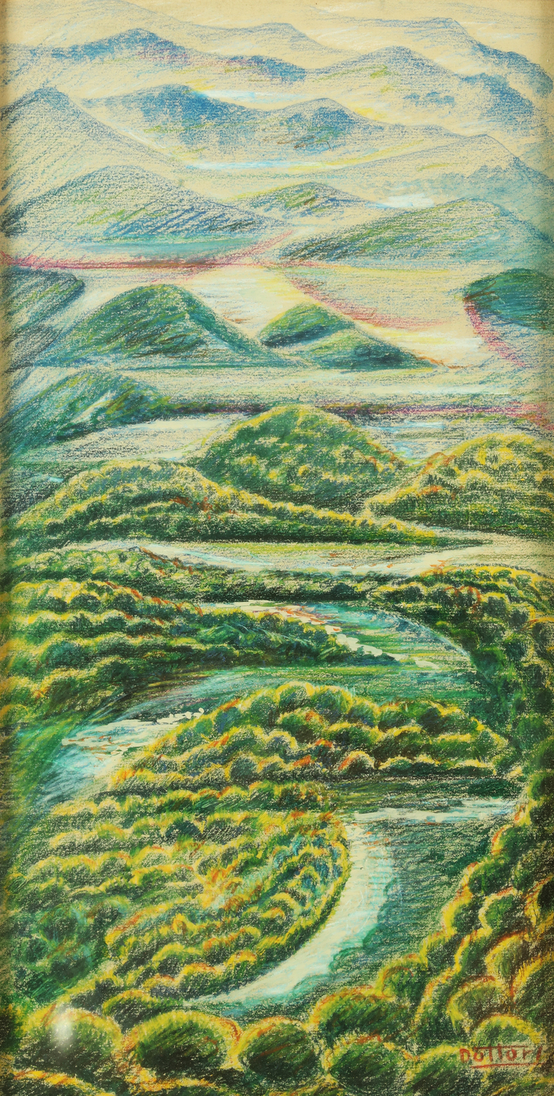 DOTTORI GERARDO (1884 - 1977) Hills and rivers. 1935. Tempera on cardboard. Cm 26,00 x 53,00. Half 30's. Signed lower right. Galleria Arte Centro, Milan, stamp at the back. Massimo Duranti authenticity certificate on photo (fotocopy). Provenance: Galleria Artecentro Studio Lattuada, Milan; Private collection, Milan. Gerardo Dottori archives authenticity certificate on photo. Pubblications: Catalogo Generale Ragionato, a cura di M. Duranti, EFFE Fabrizio Fabbri Editore, Perugia 2006, n.419, p.535.