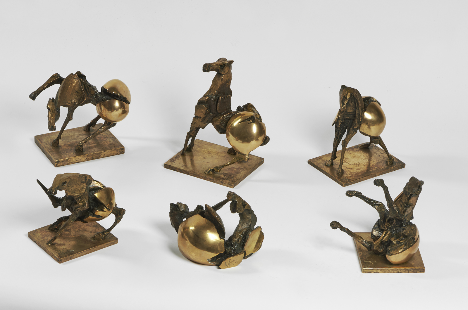 ARNOLDI NAG (n. 1928) Nag Arnoldi's Horsres (#6). Bronze. . 27/50. Edition and signature engraved at the base. Cavallo sole: 14x17x15 cm. Cavallo luna: 16.5x13x17.5 cm. Stallone: 19.5x23x20 cm. Il richiamo: 23x18.5x12.5 cm. Cavallo da circo: 20x11.5x15.5 cm. Cavallo nel vento: 17x14x11 cm. Publication: Nag Arnoldi's horses, Ghelfi editions, Verona, 1980. Provenance: Ghlefi Gallery, Verona. Private Collection, Verona.