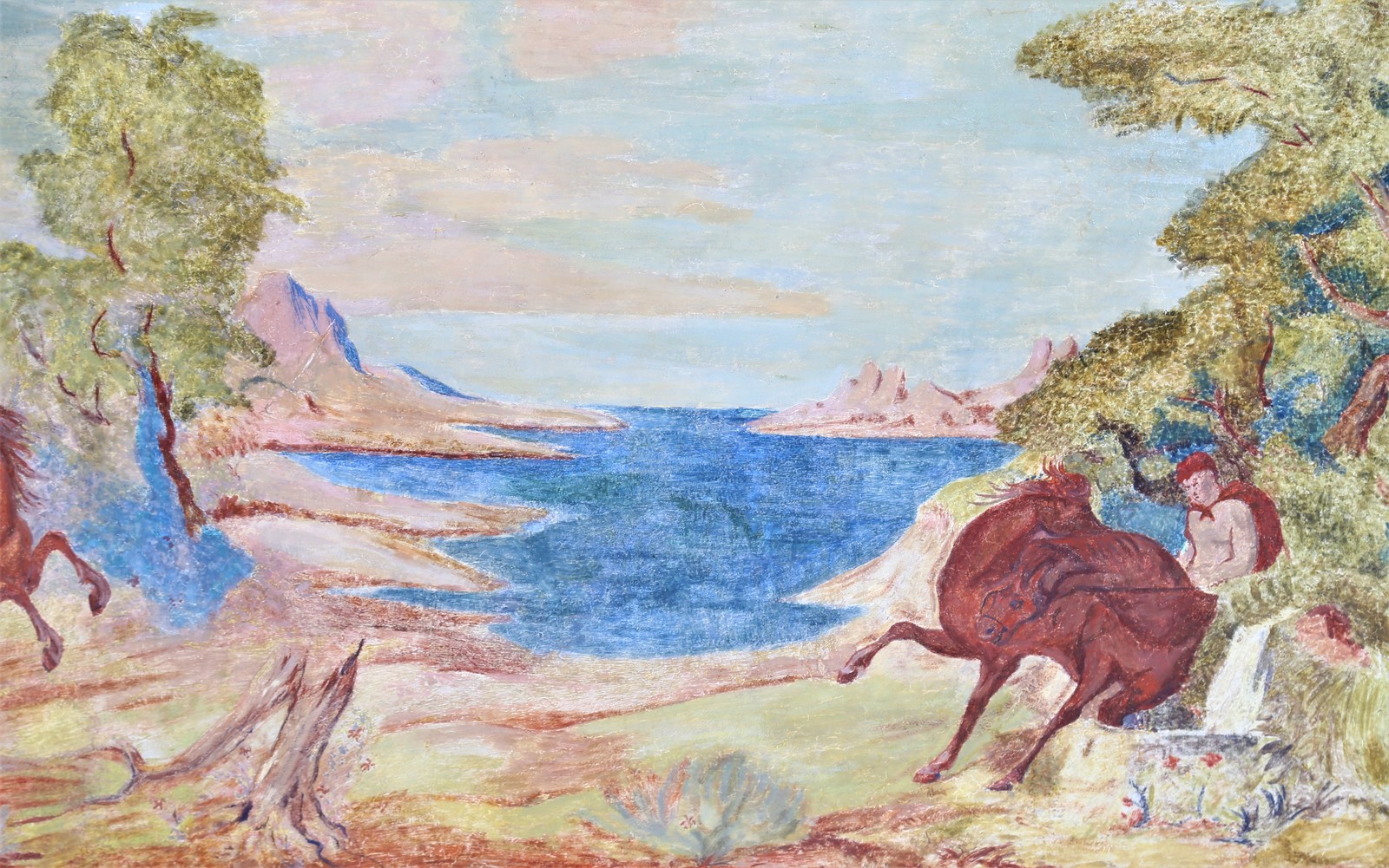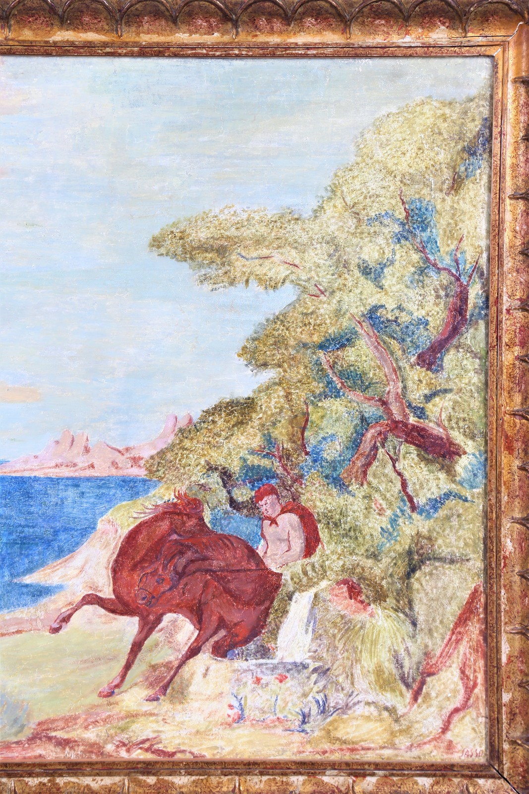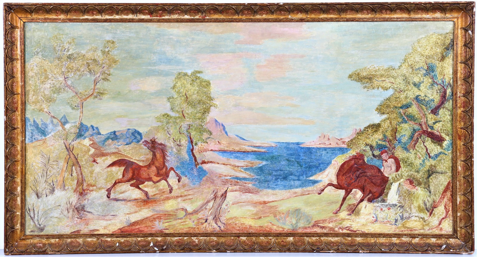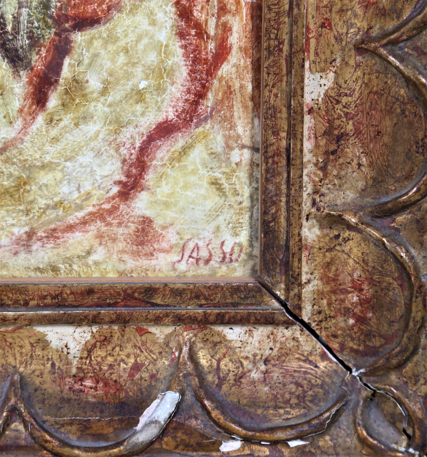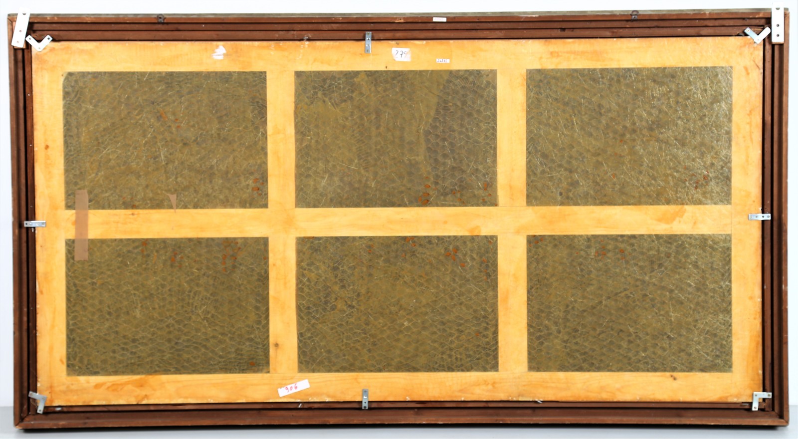 SASSU ALIGI (1912 - 2000) Senza titolo. Olio su tela applicata su tavola. Cm 200,00 x 100,00. Firma in basso a destra. Opera archiviata presso l'Archivio Sassu - Carlos Sassu Suarez, Monza come da documentazione fotografica allegata all'opera riportante il relativo numero d'inventario. Cornice presente