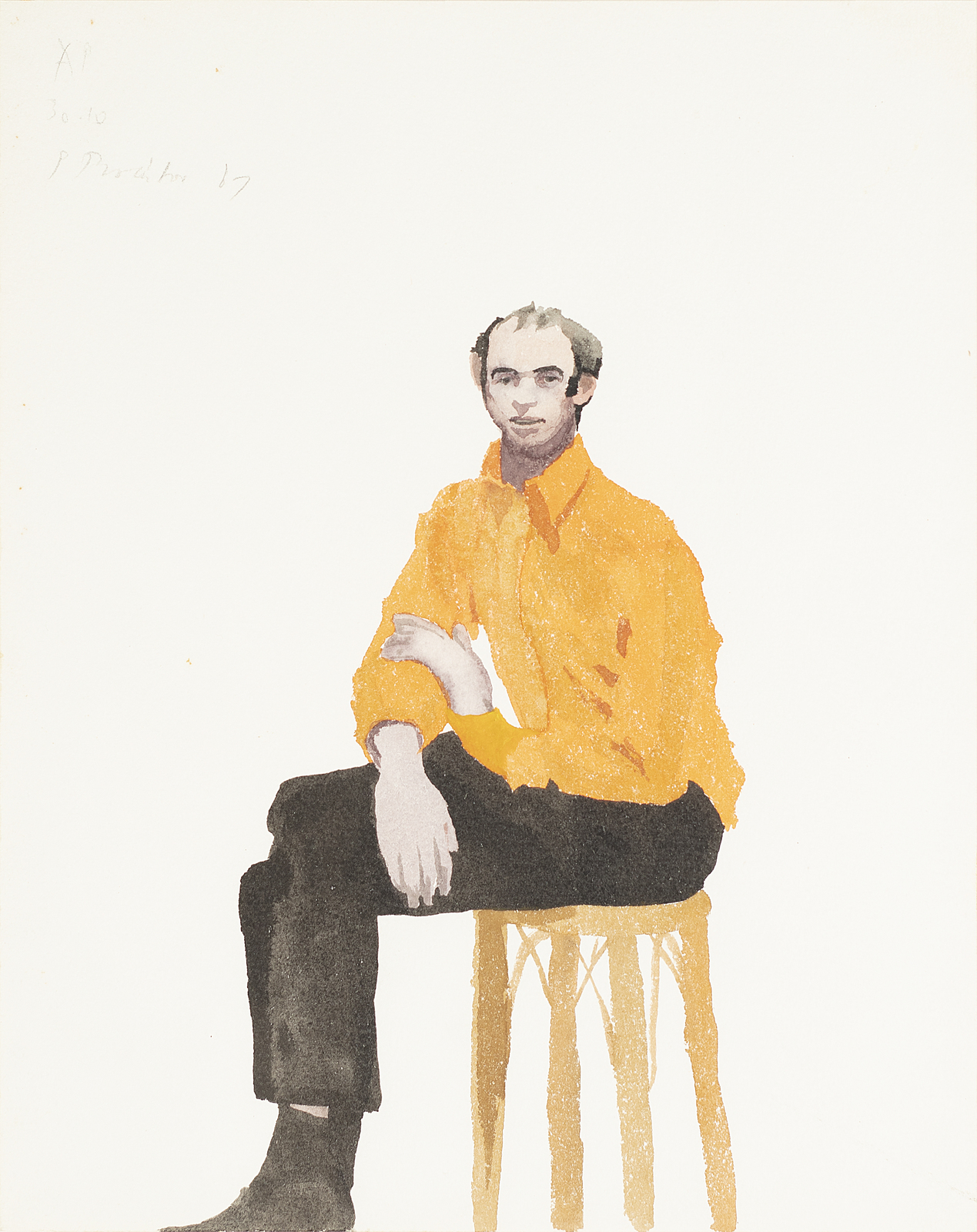 PROCKTOR PATRICK (1936 - 2003) Anthony page. 1967. Watercolour on paper. Cm 23,00 x 30,00. Signature and year upper left. At the back L'Approdo Gallery and La Città Gallery labels. Exhibition: Patrick Procktor, L'Approdo Gallery, Turin, 10-27 November 1977. Cornice presente