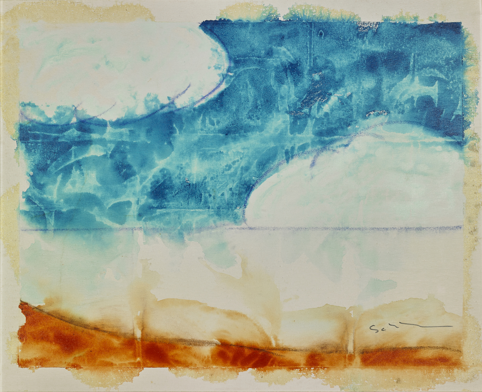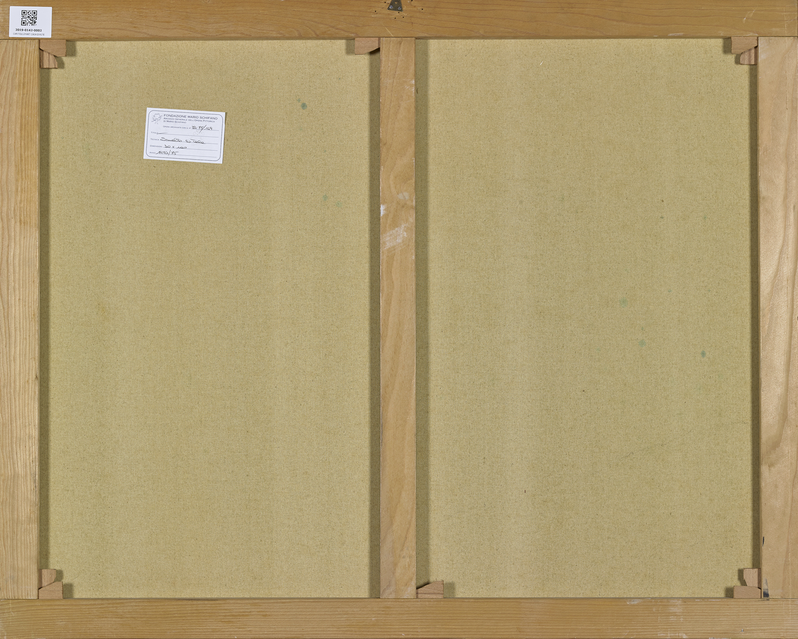 SCHIFANO MARIO (1934 - 1998) Untitled. Enamel on canvas. Cm 100,00 x 80,00. Signature lower right. At the back Mario Schifano Fondation label. Mario Schifano Multistudio Fondation, Rome authenticity certificate (21 April 2004). Plexiglass cage. Cornice presente