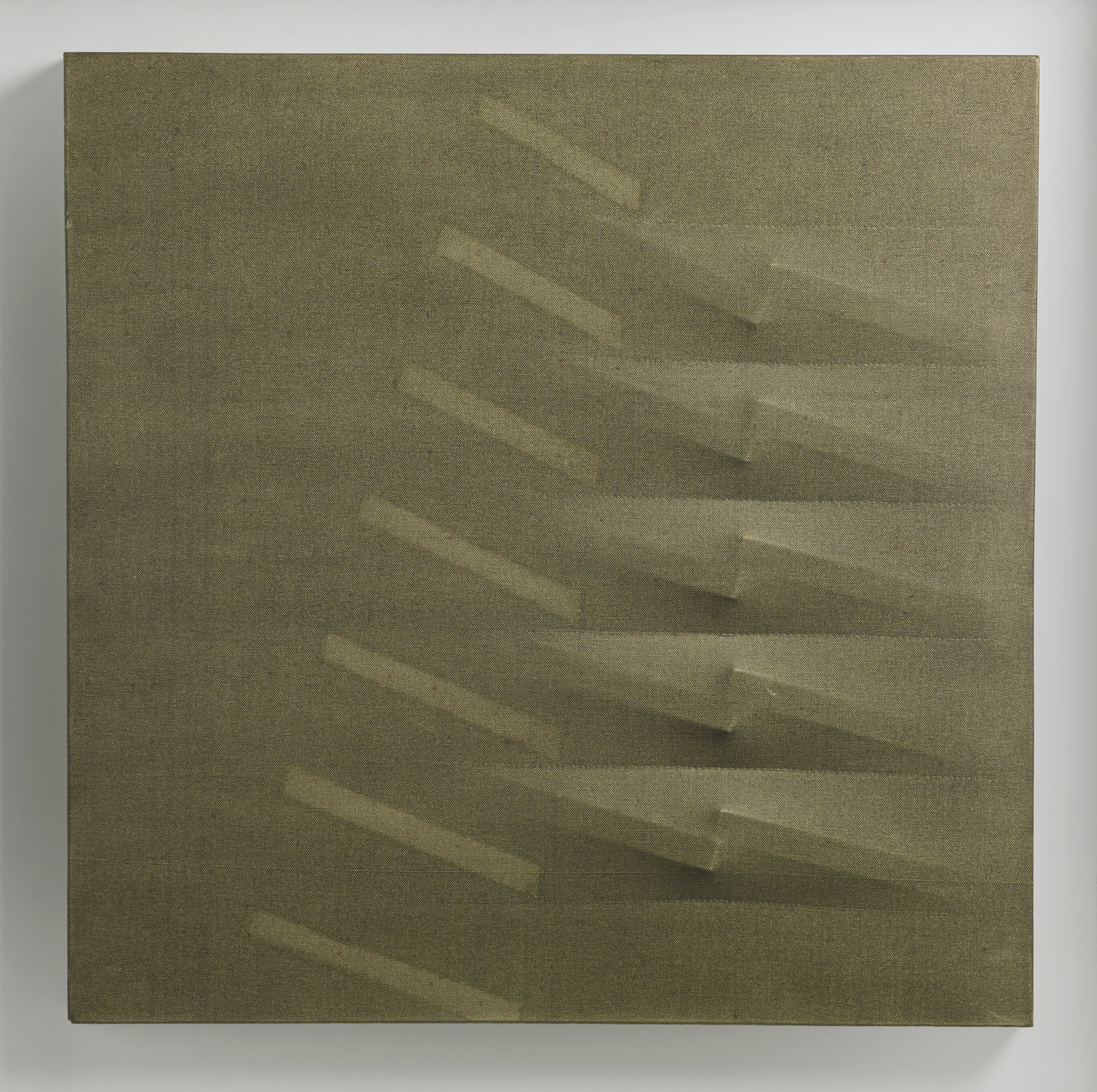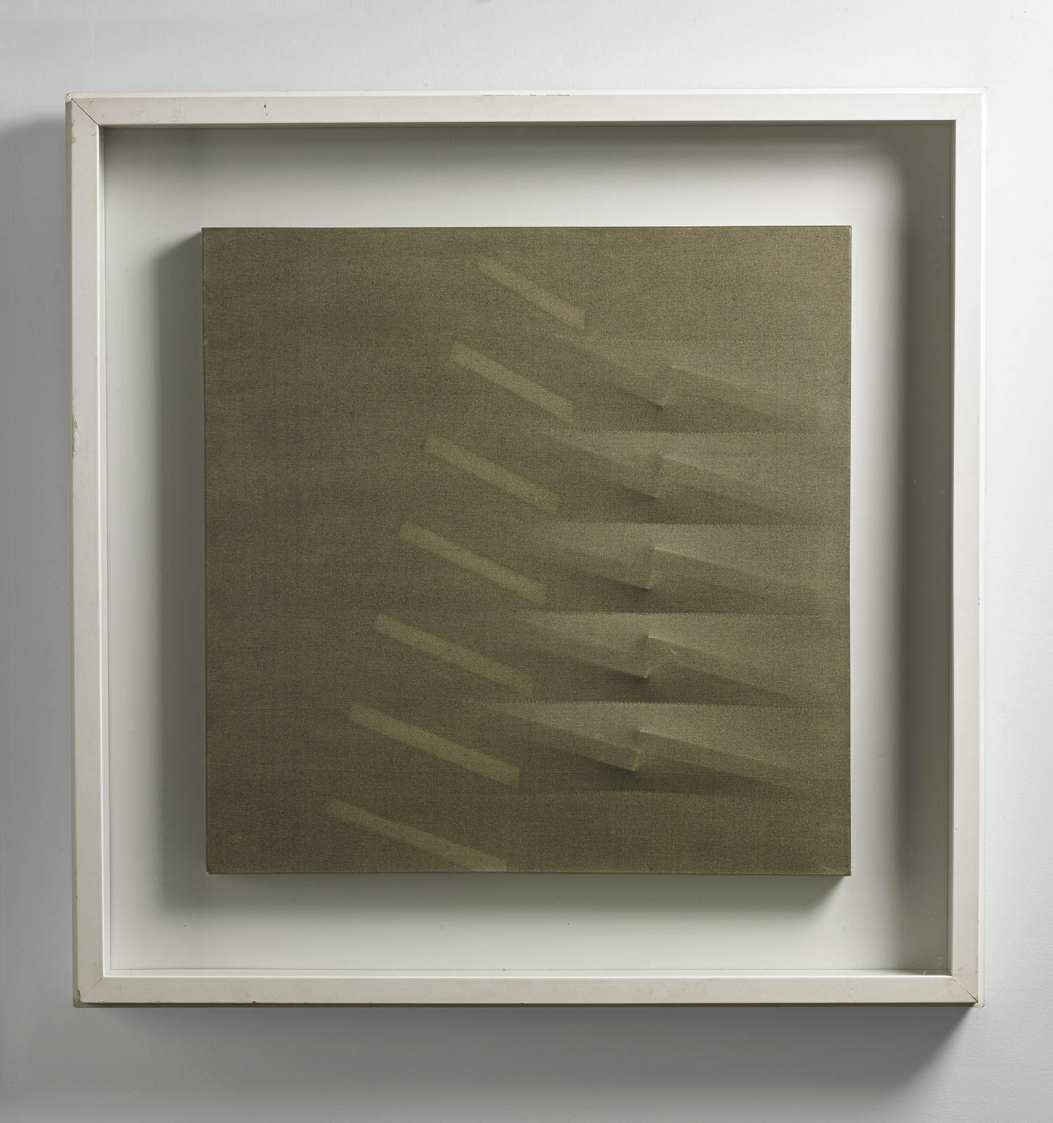 BONALUMI AGOSTINO (1935 - 2013) Grigio. 1984. Acrilico su tela estroflessa. Cm 50,00 x 50,00. Al retro firma e anno. Opera archiviata presso l'Archivio Bonalumi, Milano come da documentazione fotografica allegata all'opera riportante il relativo numero d'inventario. Cornice presente