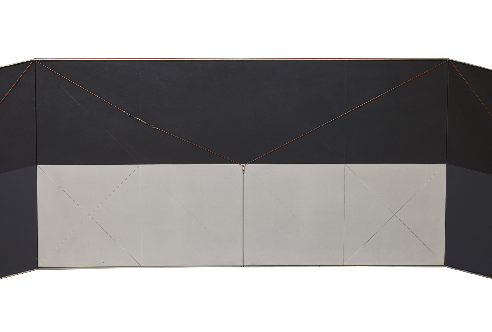 PARDI GIANFRANCO (n. 1933) Architettura. 1973. Acrilici su tela e cavi. Cm 600,00 x 175,00. Autentica su fotografia dello Studio Marconi, Milano. Provenienza: Studio Marconi, Milano. Collezione privata, Varese. Lievi difetti.