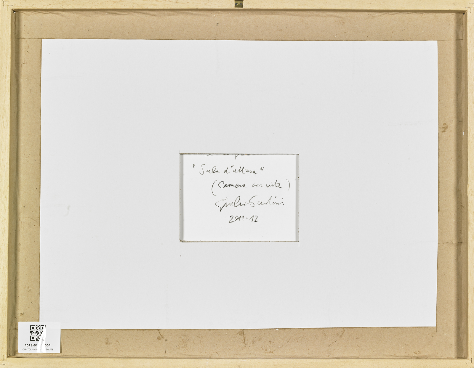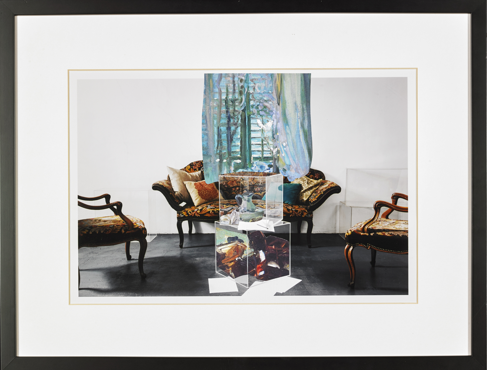 PAOLINI GIULIO (n. 1940) Room with a view. Photograph retouched by hand. Cm 43,00 x 30,00. At the back title, signature and year. Artist's authenticity certificate on photo. Publication: L'Autore che credeva di esistere by Giulio Paolini, Johan & Levi Edition, 2012, p.99. 2011-2012. Cornice presente