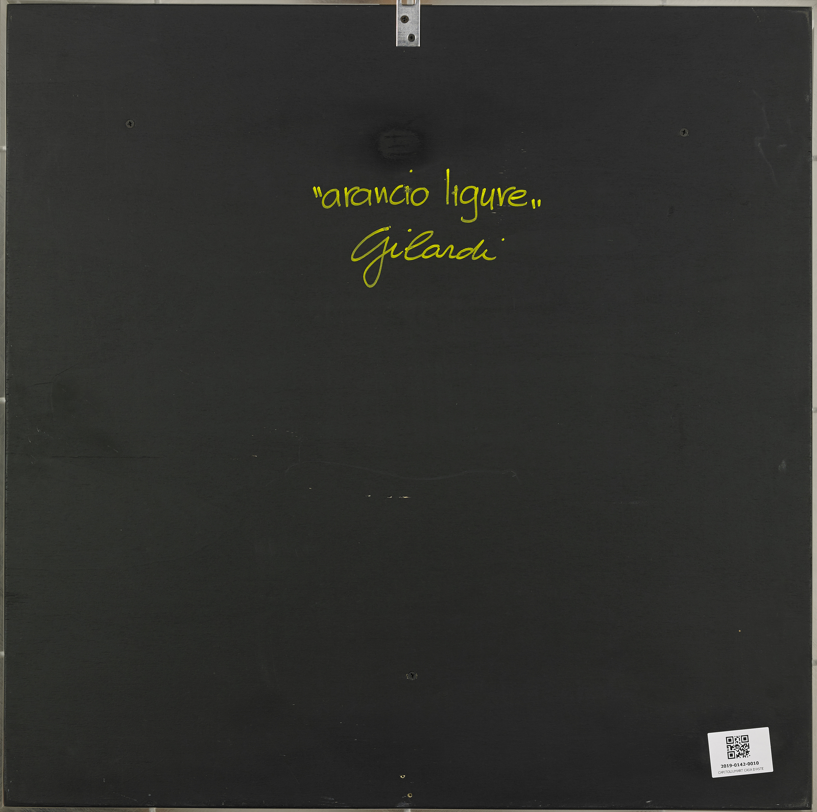 GILARDI PIERO (n. 1942) Arancio ligure. Poliuretano. Cm 70,00 x 70,00. Al retro firma e titolo. Entro teca di plexiglasss. Autentica dell'artista su fotografia. Cornice presente